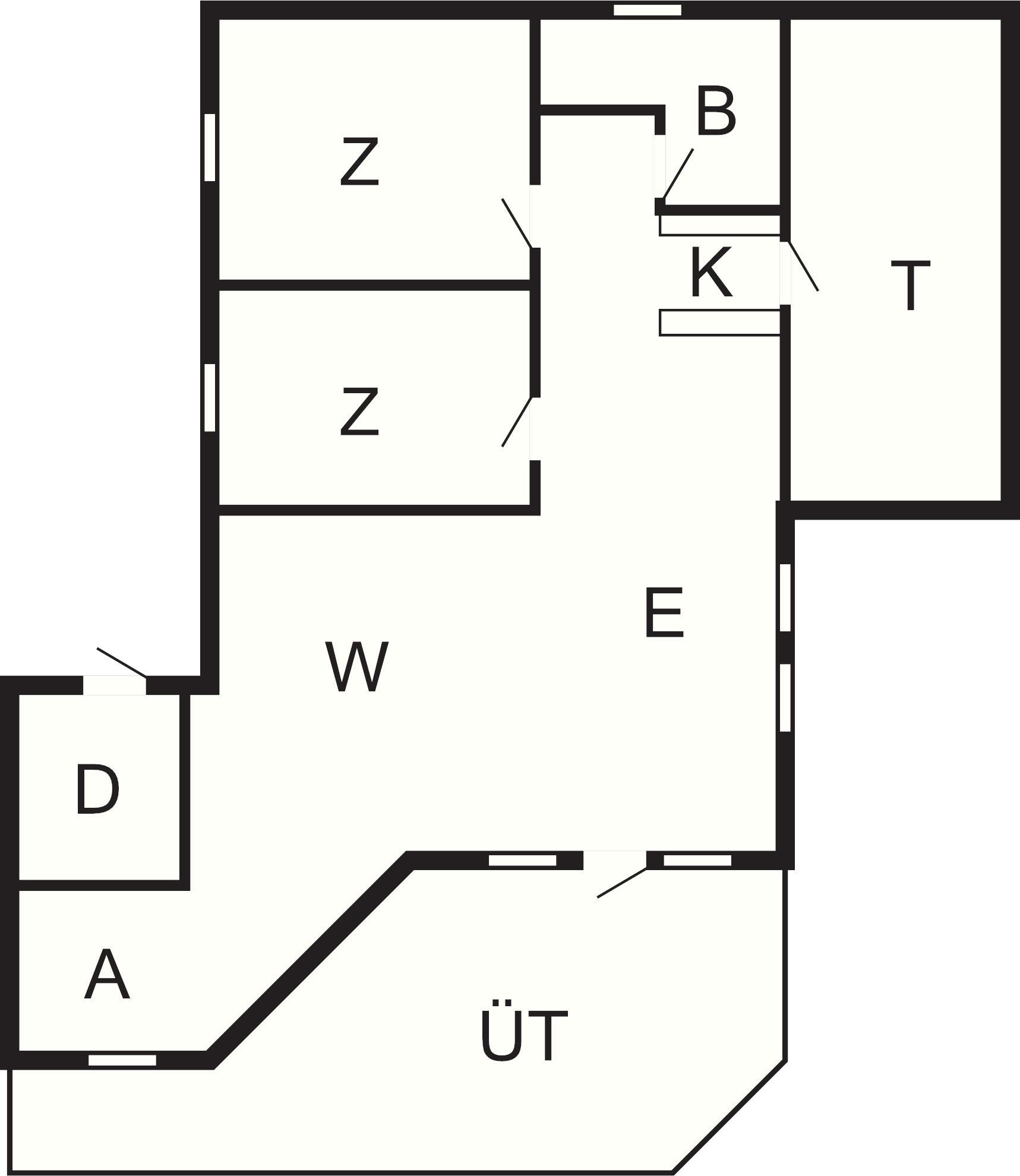 Bad: WC, Waschb., Dusche, Fußbodenheiz.