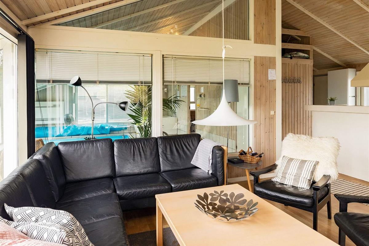Einladendes Ferienhaus mit eigenem Pool, in Küstennähe, auf einem Naturgrundstück gelegen. Es stellt u.a. drei SZ sowie zwei Schlafböden zur Verfügung. Vom ansprechenden Poolbereich mit Whirlpool hat man Zutritt zu einem Bad m. Sauna. Ausserdem gibt es im Haus ein zweites Bad m. Duschnische. Die Küchenausstattung ist zeitgemäss und umfassend. Extra TV auf einem Hems. Durchgehend modernes Mobiliar und eine wohnliche Atmosphäre im Haus. Draussen laden zwei grosse, offene und eine überdachte Terrassenfläche mit Grill und Gartenmöbeln zu gemütlichem Beisammensein ein. Zur weiteren Ausstattung des Hauses gehören ein Fernseher Holzofen, Waschmaschine und Trockner. An die jüngsten Gäste wurde mit Hochstuhl, Kinderbett sowie Sandkasten und Schaukel ebenfalls gedacht.