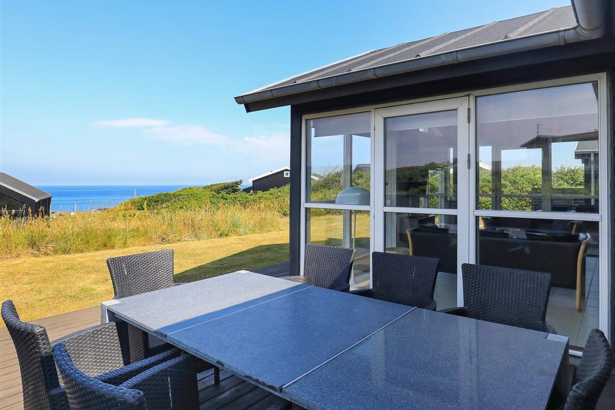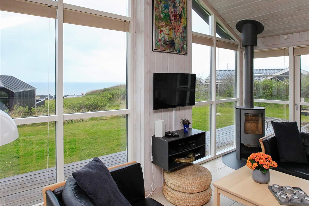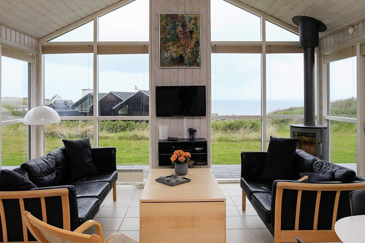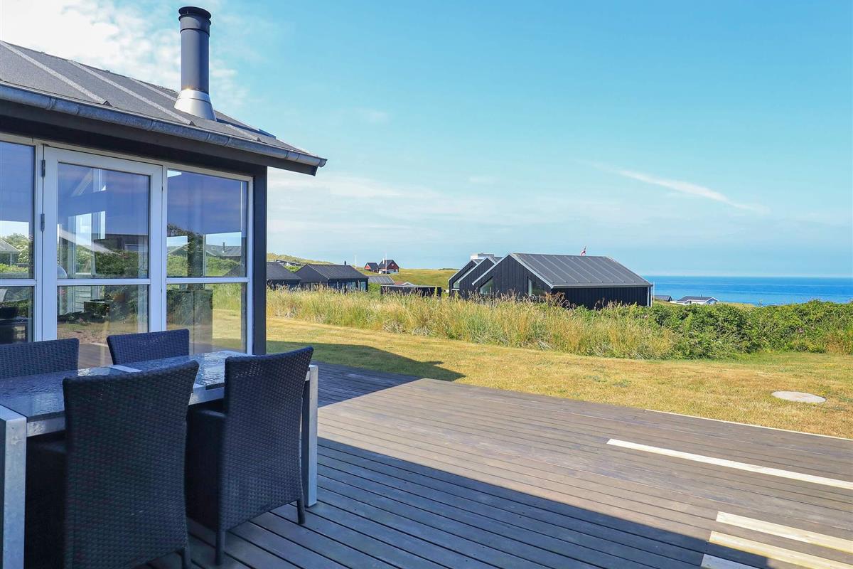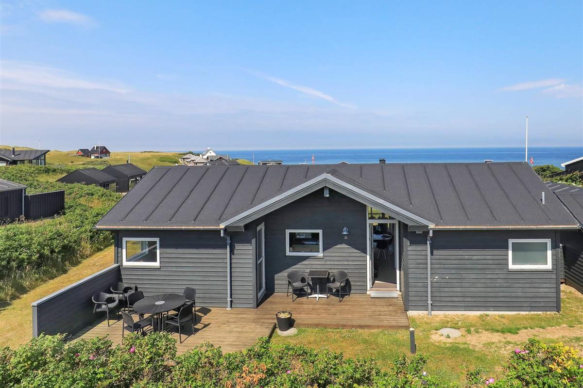 Ferienhaus mit Panoramaaussicht auf die Nordsee, auf einem schönen, 750 m² großen Dünengrundstück, wenige hundert Meter vom Badestrand entfernt gelegen. Das Grundstück eignet sich gut für Ballspiele etc. Von Zimmern, Küche und Wohnzimmer aus haben Sie Panoramablick. Moderne Möblierung mit u.a. Flachbildschirm-TV mit SAT-Empfang und kombiniertem Video/DVD-Player, Konvektionsholzofen und anderen modernen Annehmlichkeiten. Das Haus hat eine Küche, die mit dem Wohnzimmer kombiniert ist und ein Wohnzimmer mit Fliesenboden. Von Zimmern sowie Wohnzimmer besteht Zugang zu den großen Holzterrassen.