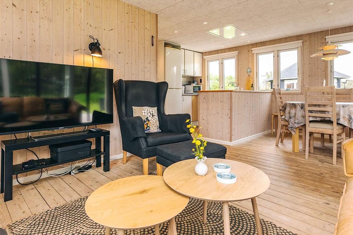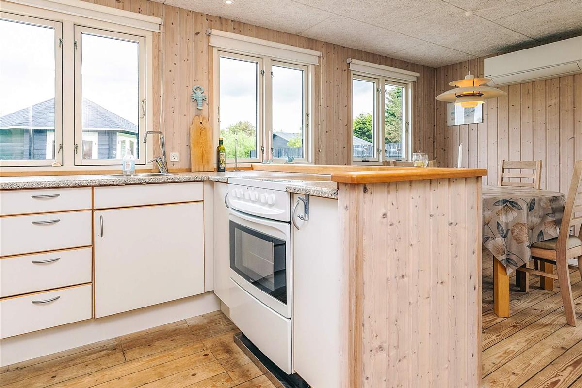 Gemütliches Ferienhaus in ruhiger Lage auf einem Naturgrundstück. Wohnliches Ambiente mit Holzofen und gut ausgestattetem Küchenbereich. Das Bad wurde 2011 modernisiert. Überdachte Terrasse. Das Haus liegt in der Nähe vom reizvollen Fischerdorf Lønstrup, in dem es kl. Geschäfte, Galerien, Töpfereien und nette Gaststätten gibt. Besuchen Sie den teils versandeten Leuchtturm von Rudbjerg Knude.