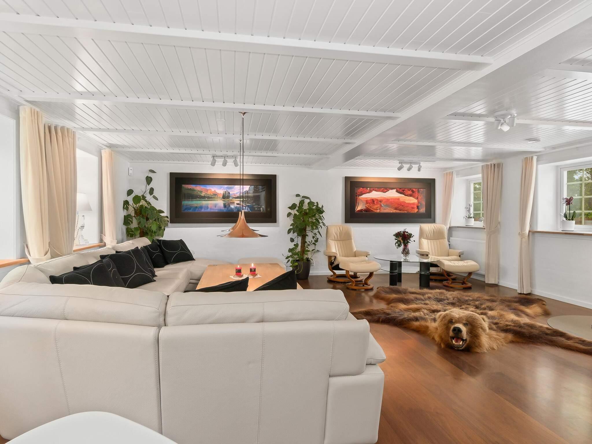Das gesamte Haupthaus verfügt über eine Fußbodenheizung. Dank der Wärmerückgewinnung, die Zugluft verhindert, ist das Raumklima angenehm. Das Haupthaus verfügt über ein Wohnzimmer und ein Esszimmer mit Essbereich, Stühlen und eingebautem Fernseher. Das Wohnzimmer hat große Fenster, die viel Licht hereinlassen und Zugang zur Terrasse bieten. Es gibt drei Holzöfen und sechs Fernseher.