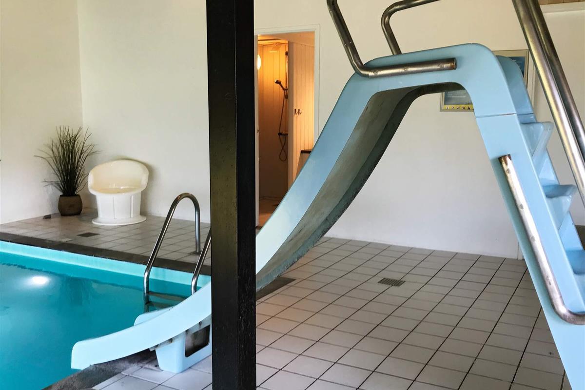 Im Poolbereich gibt es einen Swimmingpool mit Kinderecke und Rutsche für den Badespaß. Anschließend kann man sich im Bad gleich nebenan in der heißen Sauna aufwärmen.