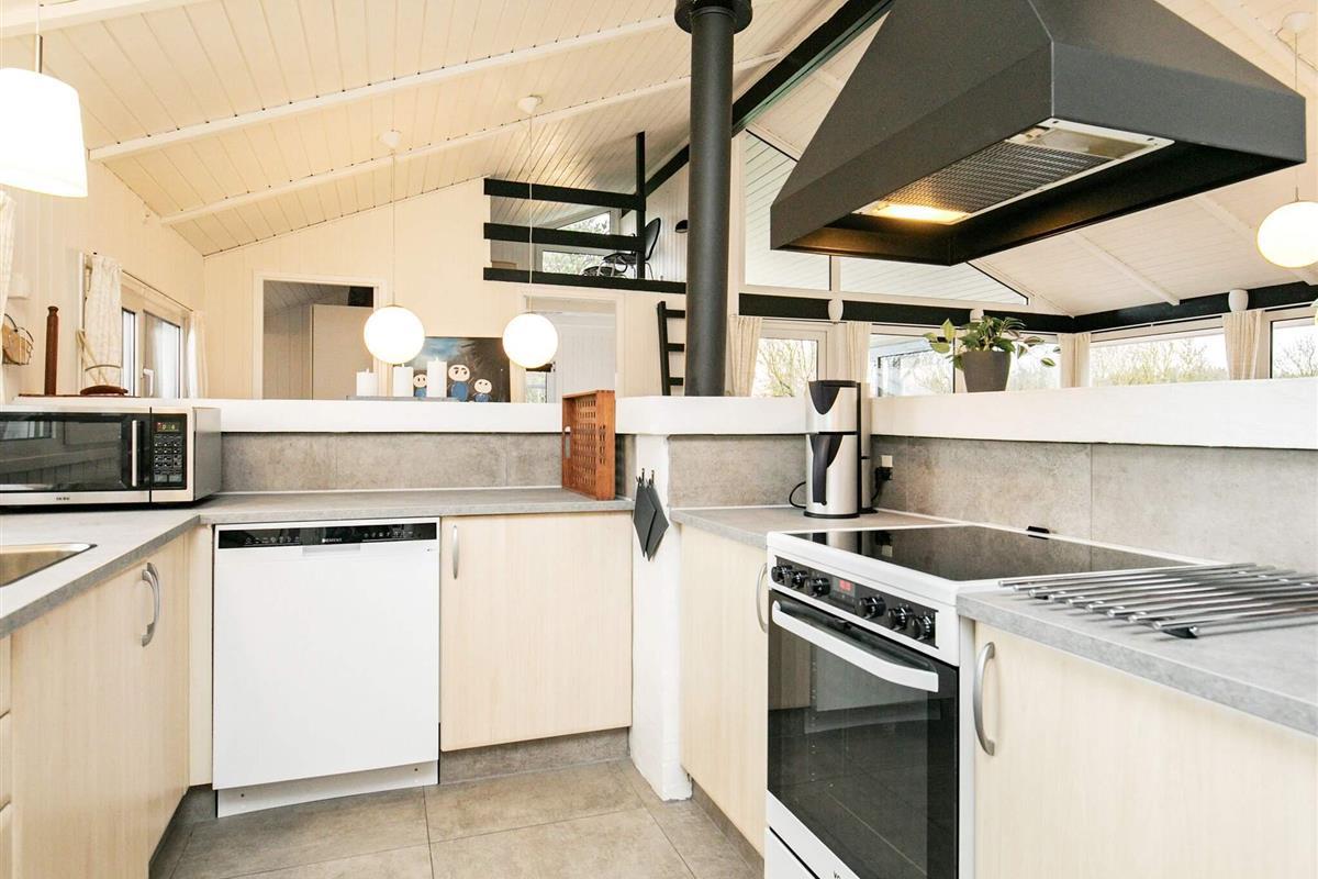 Das geräumige Ferienhaus hat einen offenen Küchen-/Wohnbereich für das Familienleben sowie vier Schlafzimmer und einen Hems oben unter der Dachschräge. Außerdem stehen zwei Bäder mit Dusche/WC zur Verfügung.