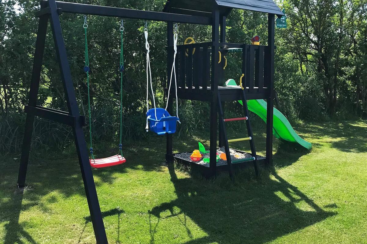 Das zugehörige, ebene Rasengrundstück stellt für die Kinder einen Spielturm mit Schaukeln bereit und Trampolin (Benutzung auf eigene Verantwortung und Versicherung) und eignes sich bestens für diverse Outdoor-Aktivitäten sowie zum Sonnenbaden etc.