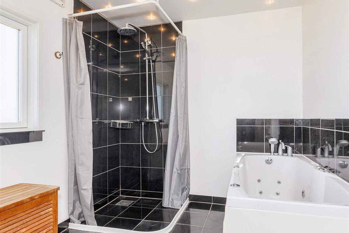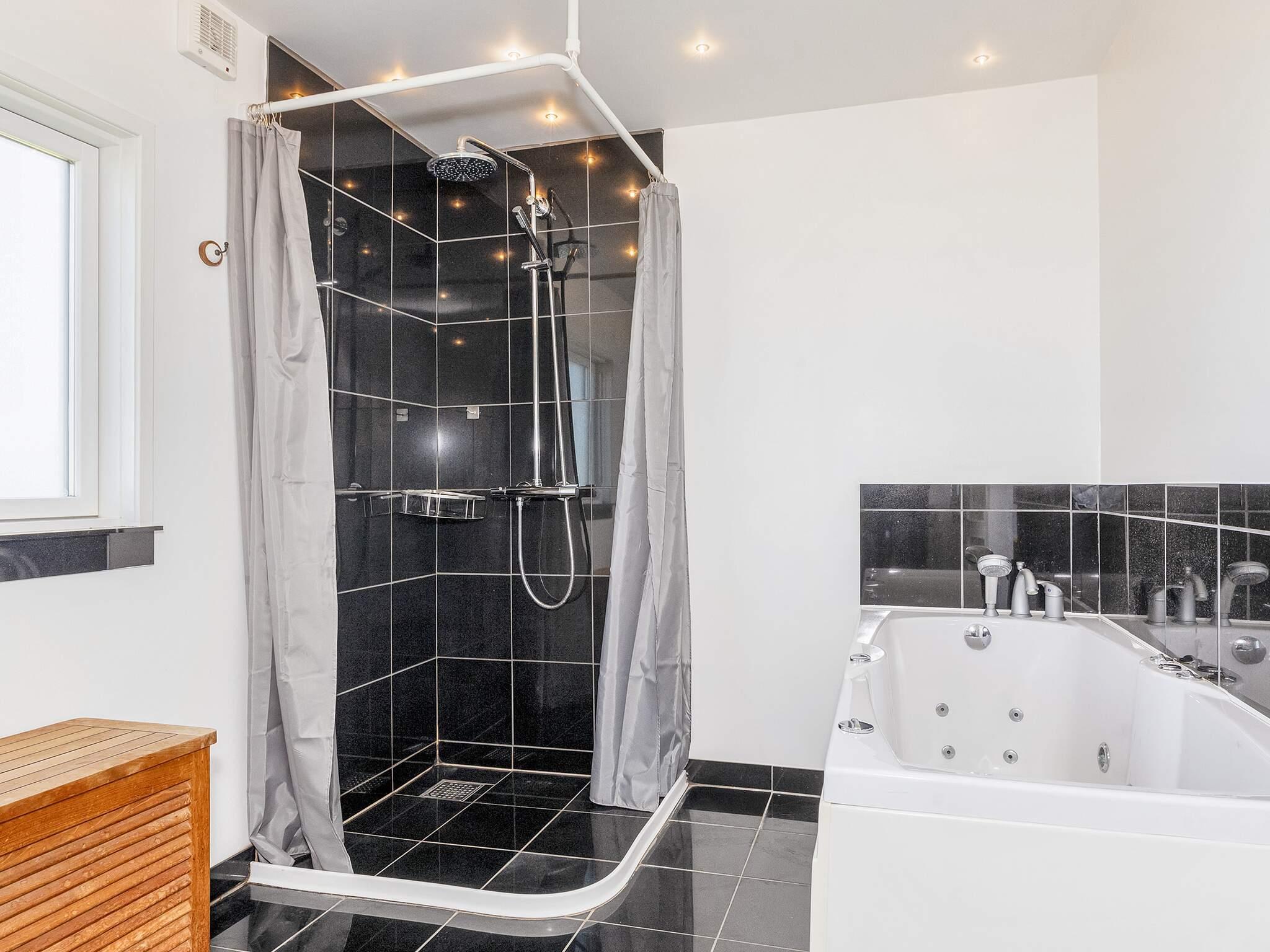 Unten offener Küchen-/Wohnbereich für das Familienleben mit viel Platz für alle. Wenn Sie Ruhe brauchen, gibt es auch ein zweites Wohnzimmer im 1. Stock. Das Ferienhaus hat einen Fernseher mit Chromecast zum Streamen eigener TV-Anbieter. Zur umfassenden Ausstattung des Ferienhauses gehören auchg zwei klimafreundliche Wärmepumpen, Waschmaschine, Wäschetrockner und 50 Liter Gefrierfach. Das Badezimmer des Hauses enthält eine schöne Whirlwanne für 1 Person. Das Badezimmer hat angenehme Fußbodenheizung.