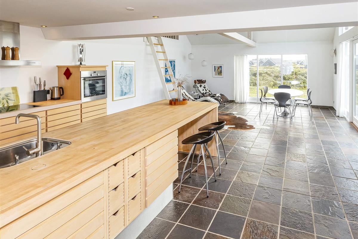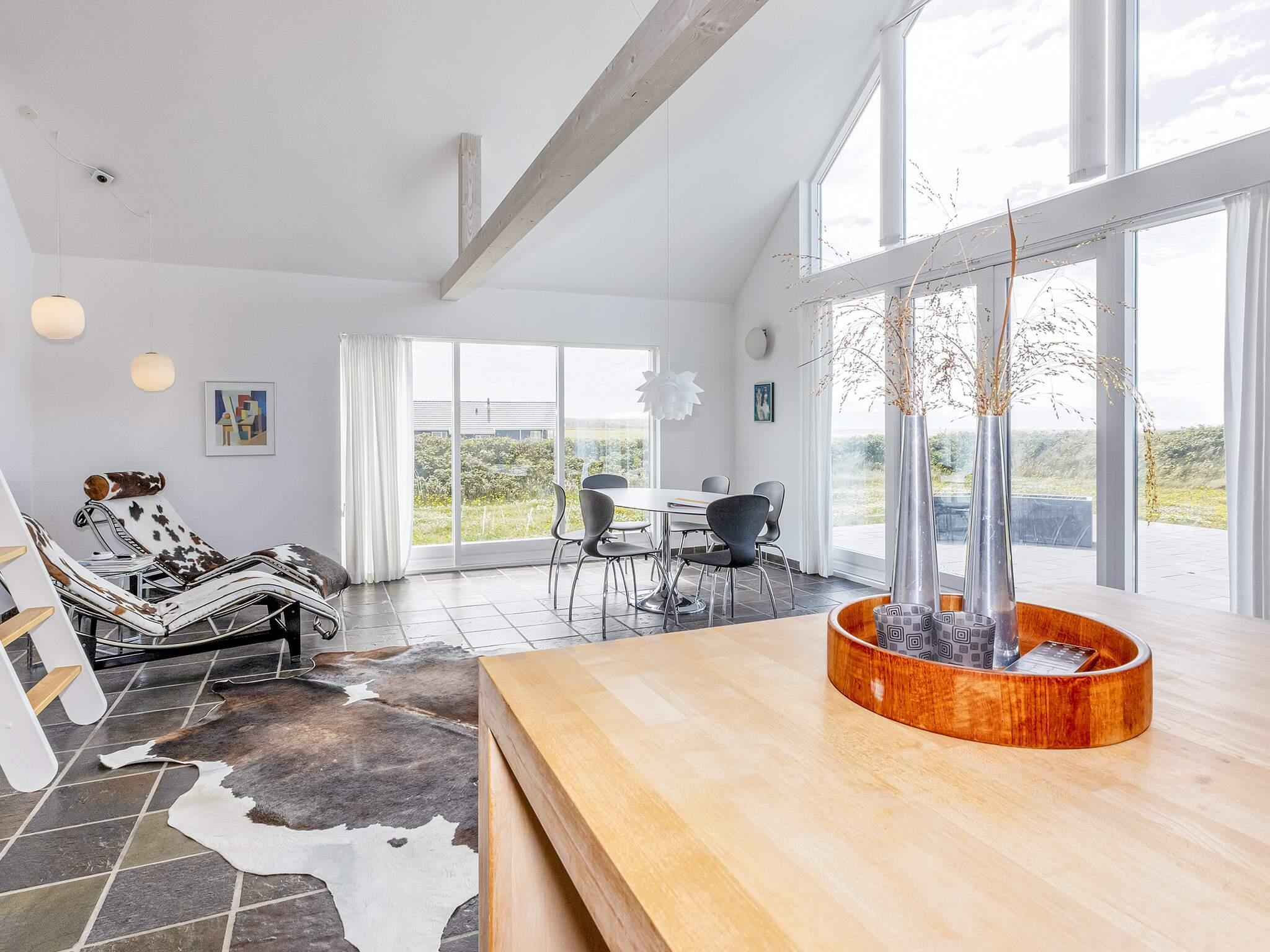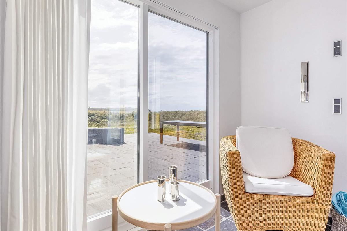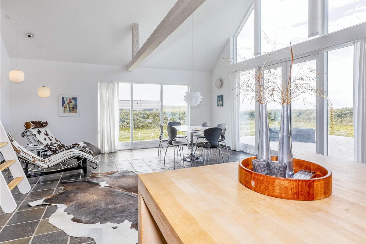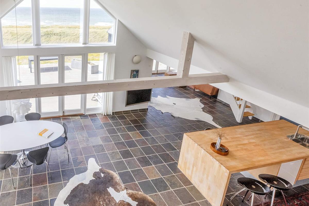 Im Inneren präsentiert sich das Ferienhaus mit hellem, geschmackvollem Interieur. Im 1. Stock befinden sich u.a. ein zweites Wohnzimmer, von dem man besonders schönen Meerblick hat! Es gibt auch 2 Schlafplätze in einem Doppelbett am Ende des Wohnzimmers. Ein Schlafzimmer findet man oben auf dem geräumigen Hems, der durch eine Glaswand mit Glastür vom Rest des Hauses abgetrennt ist. Dadurch bleibt die schöne Aussicht vom Zimmer aus erhalten. Eine einladende Unterkunft, in die viele Gäste Jahr für Jahr zurückkehren.