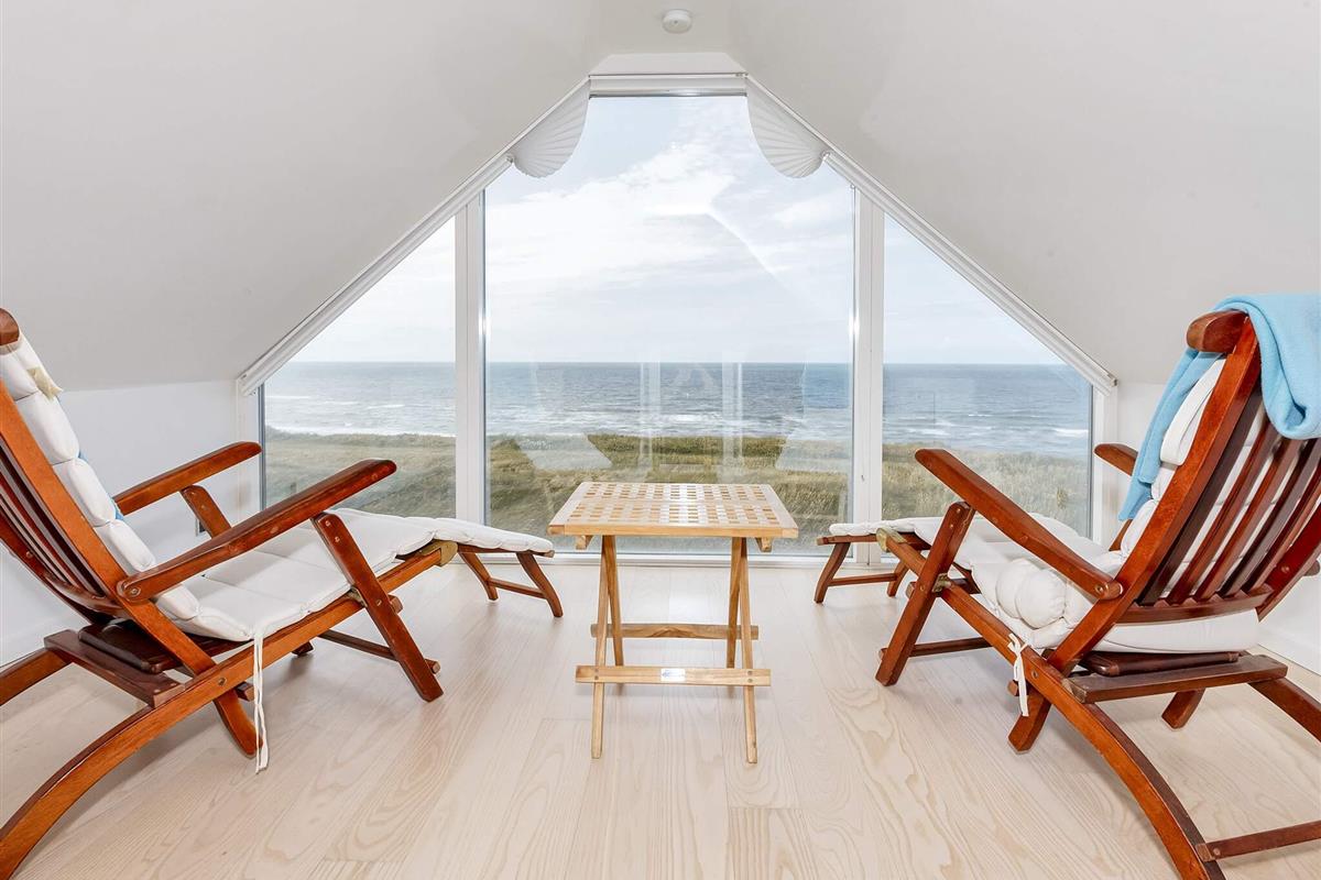 Fantastisches Ferienhaus mit Whirlwanne im Bad und attraktiver Lage, ganz vorne in erster Reihe am Meer bei Lønstrup. Hier bietet sich einem ein einzigartiger Panoramaausblick über das Meer und die Küstenregion, u.a. bis zum Leuchtturm Rubjerg Knude! Das Ferienhaus steht auf einem 1.260 m2 großen, offenen Naturgrundstück am Ende einer kleinen Sackgasse. Die Lage trägt dazu bei, das Erlebnis noch einzigartiger zu machen.