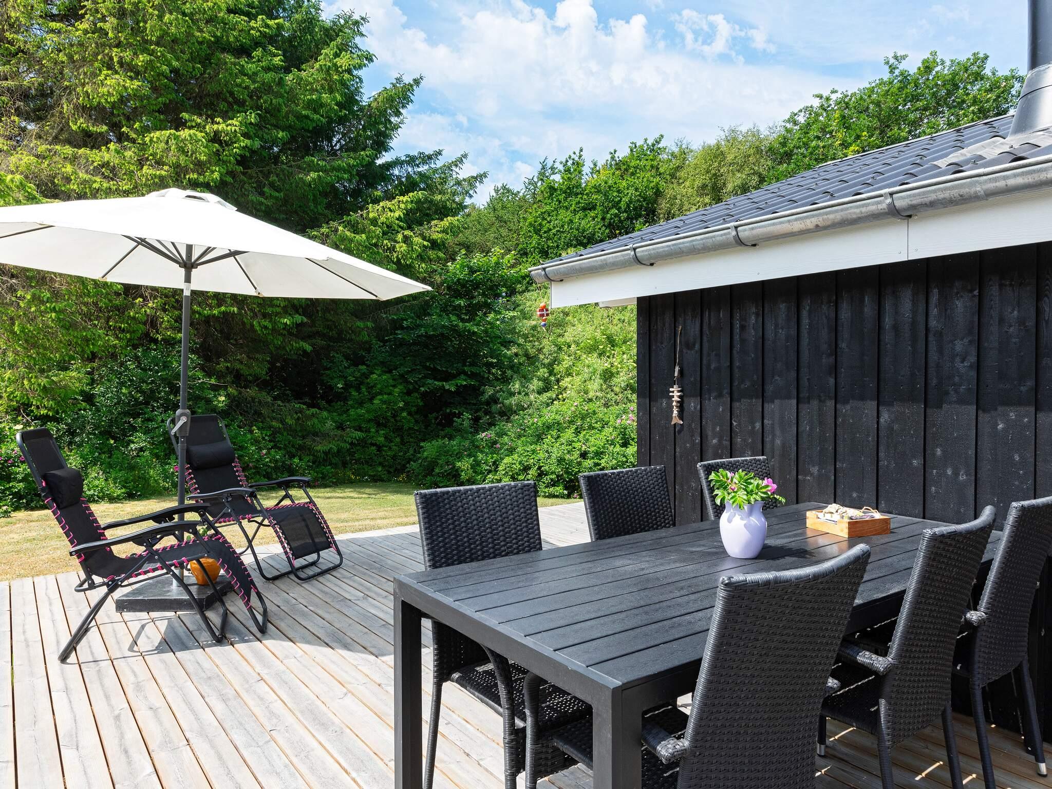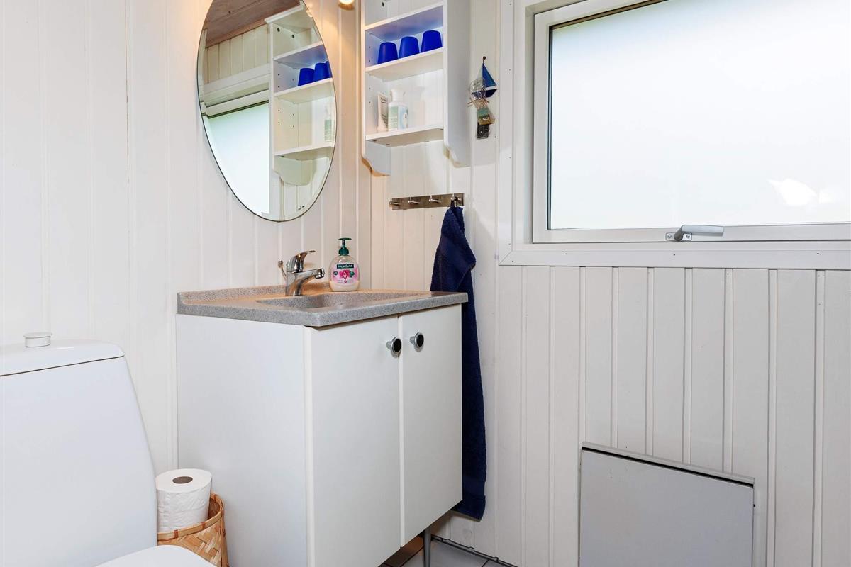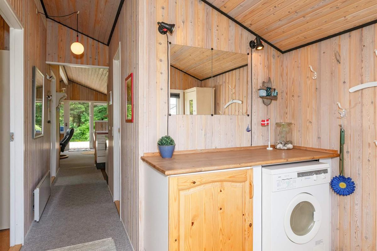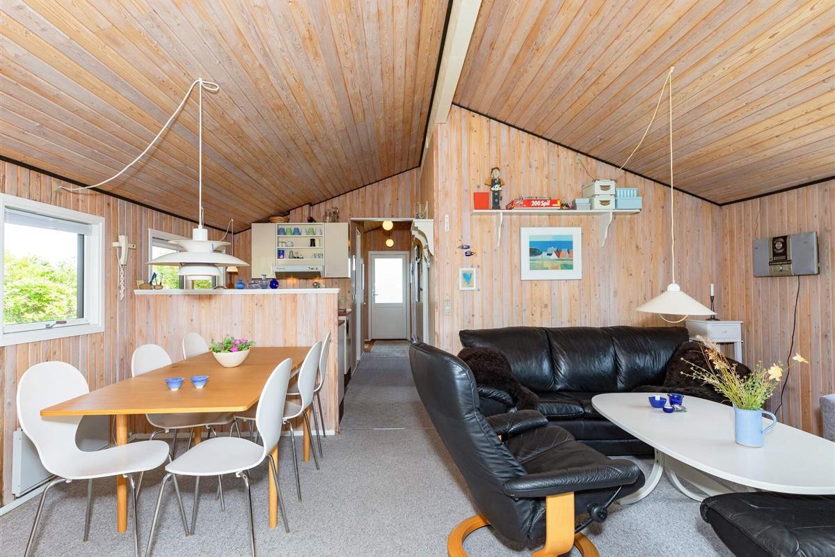 Das Ferienhaus ist mit einem schönen Wohnzimmer mit Holzofen in offener Verbindung zur Küche ausgestattet. Die Küche enthält u.a. Geschirrspüler. Darüber hinaus gibt es ein funktionelles Badezimmer und drei Schlafzimmer mit Etagenbetten bzw. Einzelbett. Im Haus befindet sich auch eine Waschmaschine.