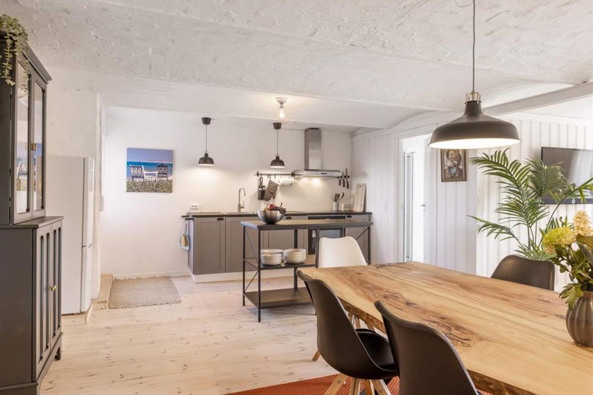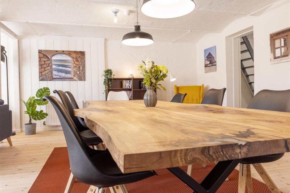 Komm rein in Kostalden und spüre den Charme dieser ehemaligen Scheune, wo originale Gewölbedecken auf modernen Komfort treffen. Die geräumige Wohnküche mit ihrem langen handgefertigten Tisch lädt zu gemeinsamen Mahlzeiten ein, während das gemütliche Wohnzimmer einen warmen Ort zum Entspannen bietet. Draußen gibt's eine große private Terrasse mit freiem Blick, perfekt für Abendessen bei Sonnenuntergang oder Grillabende am Meer.
