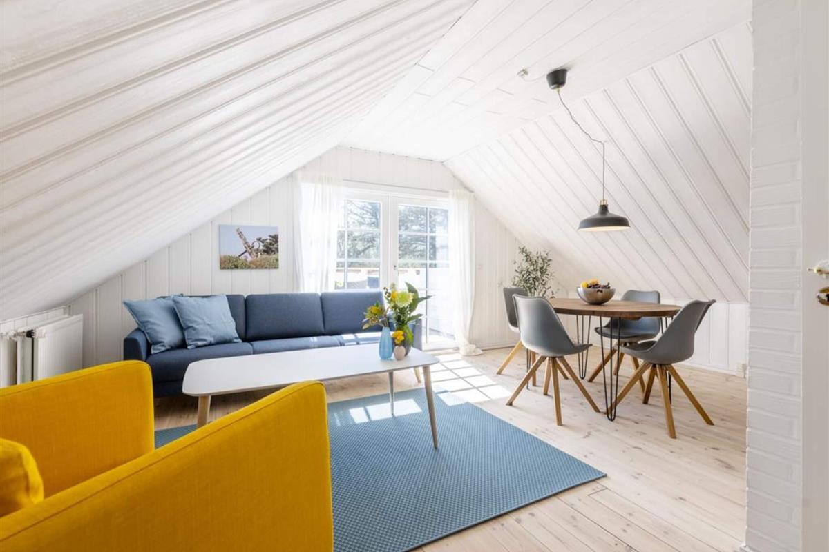 Kostalden (der Kuhstall) ist der natürliche Treffpunkt mit einer großen Wohnküche, in der bis zu 14 Personen gemeinsam essen können, zwei Schlafzimmern (eines davon im Obergeschoss, erreichbar über eine steile Treppe), einem Badezimmer und privaten Terrassen. Kalvestalden (der Kälberstall) bietet Platz für 4 Gäste in zwei Schlafzimmern mit Meerblick, einem Badezimmer und zwei Terrassen. Høloftet (der Heuboden) ist eine Wohnung im ersten Stock für bis zu 6 Gäste mit zwei Schlafzimmern, einem Einzelbett im Wohnbereich, einem Balkon und einem Badezimmer mit Sauna und Badewanne.