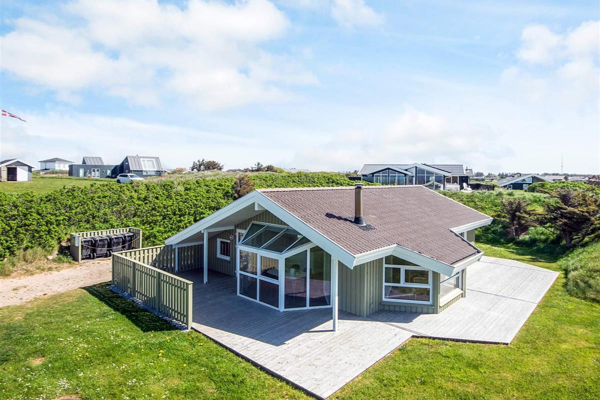 Gemütliches Ferienhaus auf einem 2300 m² Dünengrundstück mit gutem Windschutz gelegen. Zwei Erker aus Glas sorgen innen für eine helle, freundliche Stimmung. Möbel im Wohnzimmer von 2004. Auf 76 m² Terrassenfläche können Sie Sommer, Sonne und frische Luft genießen. Für Entspannung sorgen u.a. der 2-Personen Whirlpool und die Sauna. Die Schlafplätze auf dem Hems sind Kindern vorbehalten und nicht für Erwachsene geeignet.