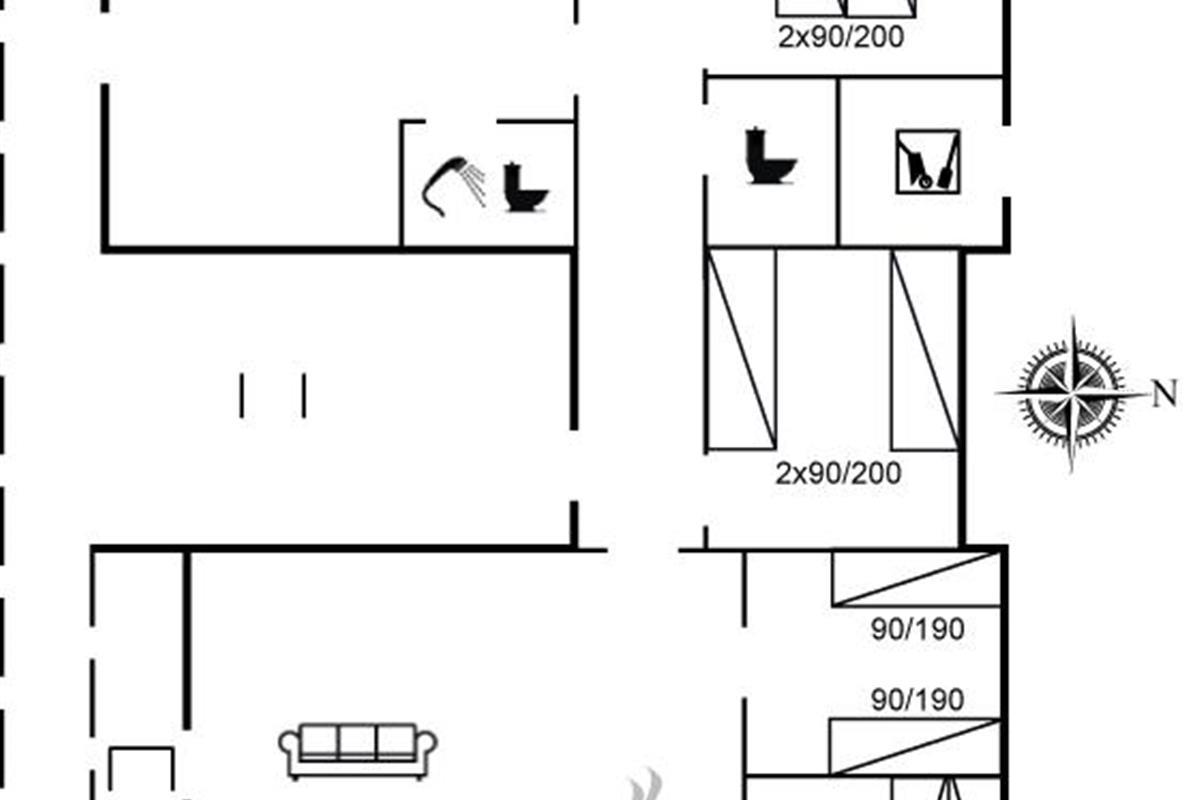 De vakantiewoning is gelegen op een 1351 m² groot natuural grond. Afstand tot de zee 400 m. Dichtstbijzijnde winkel 200 m. Bij de vakantiewoning hoort 40 m² terras. Daarnaast is er een 10 m² groot overdekt terras. Schommel. Zandbak. Het huis heeft een stopcontact voor het opladen van een elektrische auto. Parkeerplaats bij het huis.