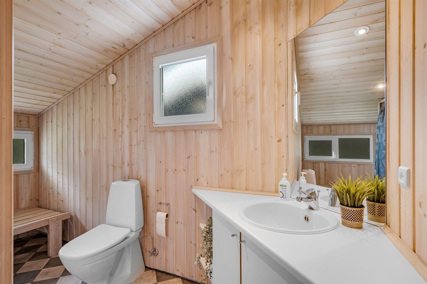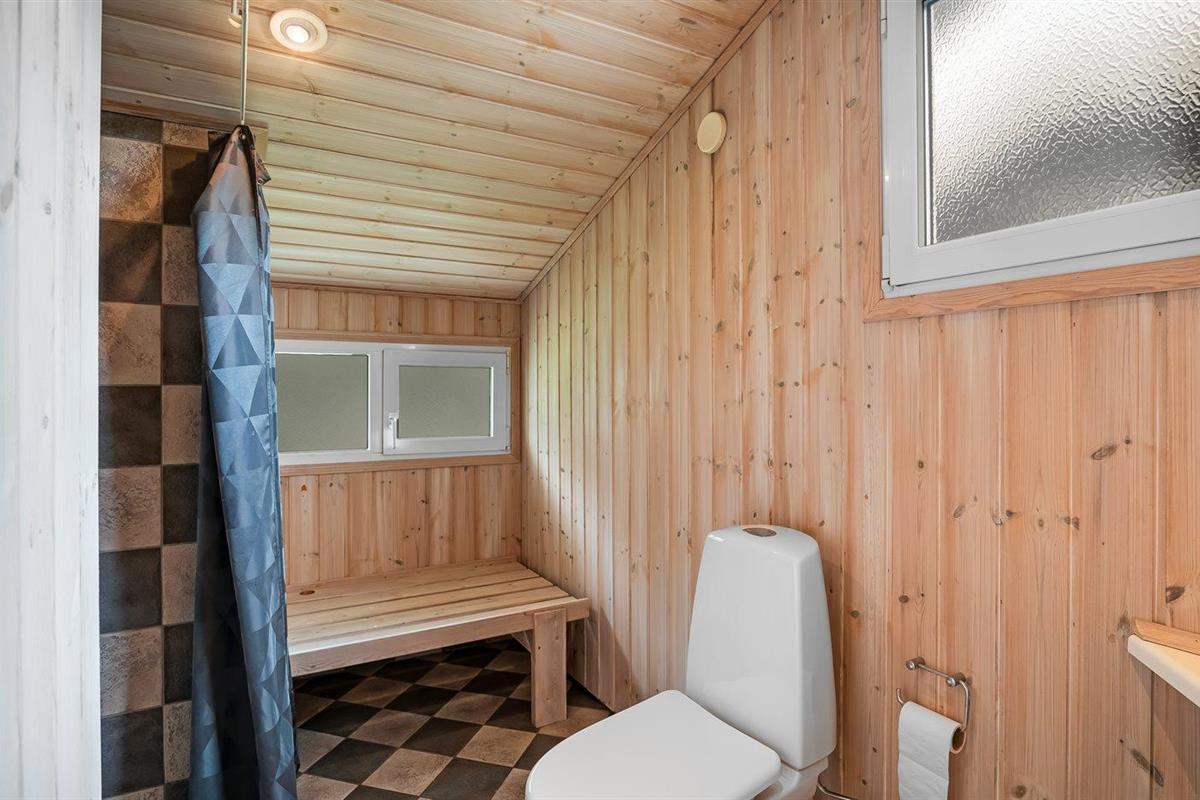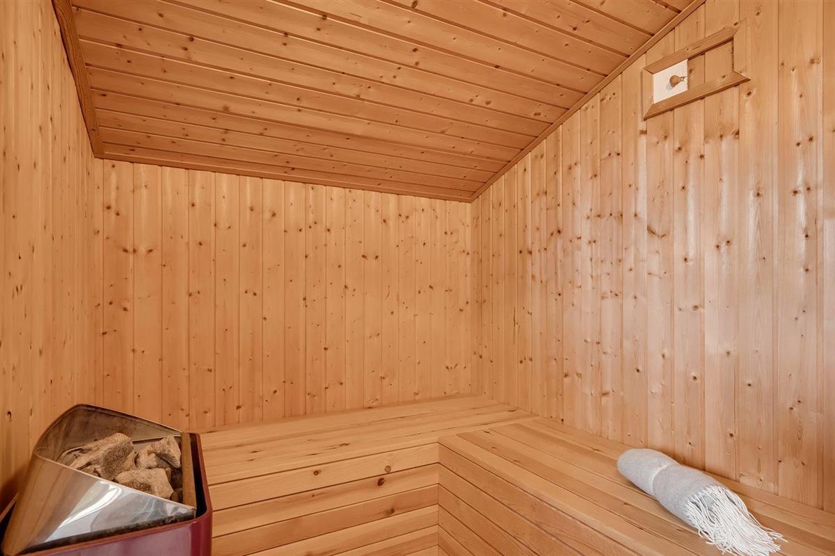 Er is 2 badkamers met douche en 2 toiletten. Er is vloerverwarming in 1 badkamer. De sauna biedt de gelegenheid tot ontspanning.