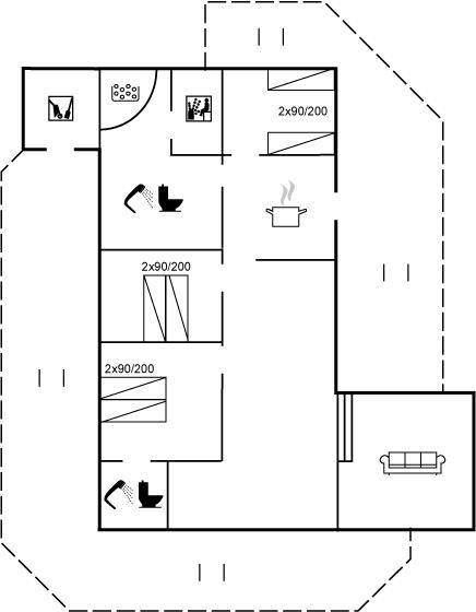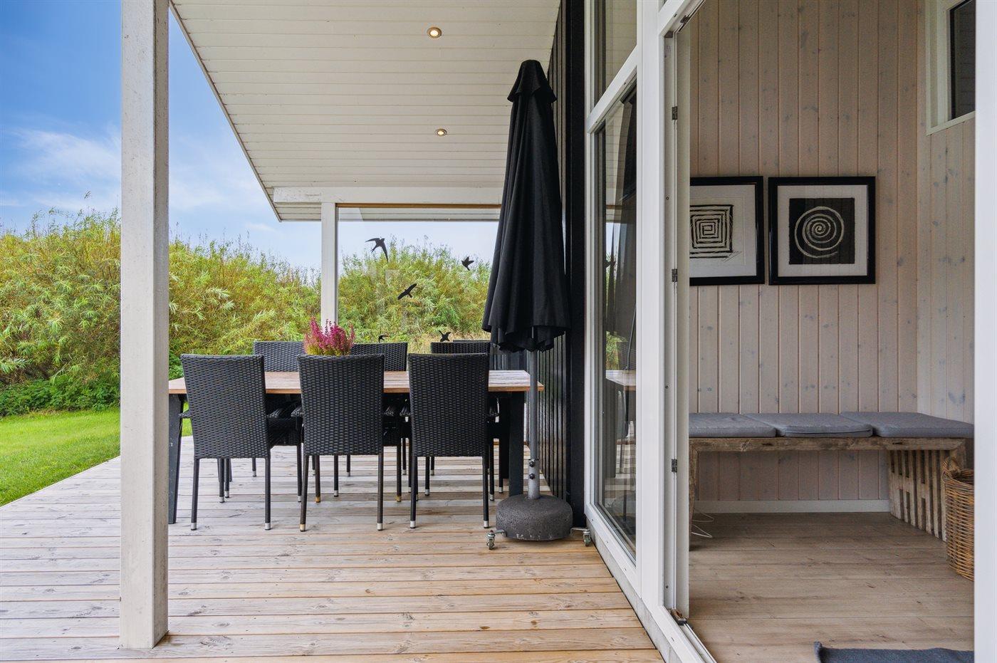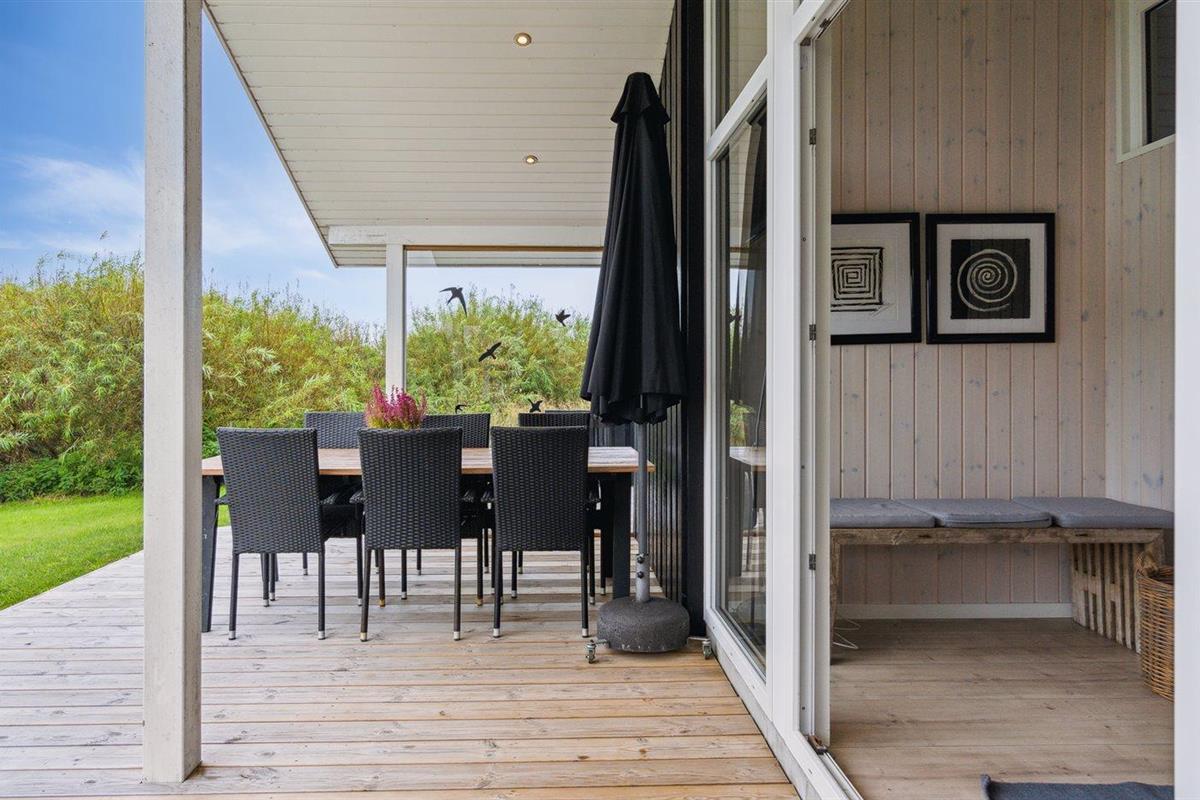 De vakantiewoning is gelegen op een 1057 m² groot natuural grond. Afstand tot de zee 403 m. Dichtstbijzijnde winkel 300 m. Bij de vakantiewoning hoort 85 m² terras. Gereedschapsruimte. Schommel. Zandbak. Glijbaan. Het huis heeft een stopcontact voor het opladen van een elektrische auto. Parkeerplaats bij het huis.