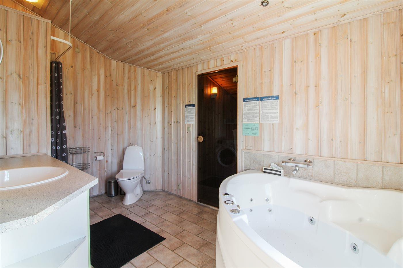 Er is 1 badkamer met douche en 1 toilet.. Er is vloerverwarming in 1 badkamer. De sauna biedt de gelegenheid tot ontspanning.