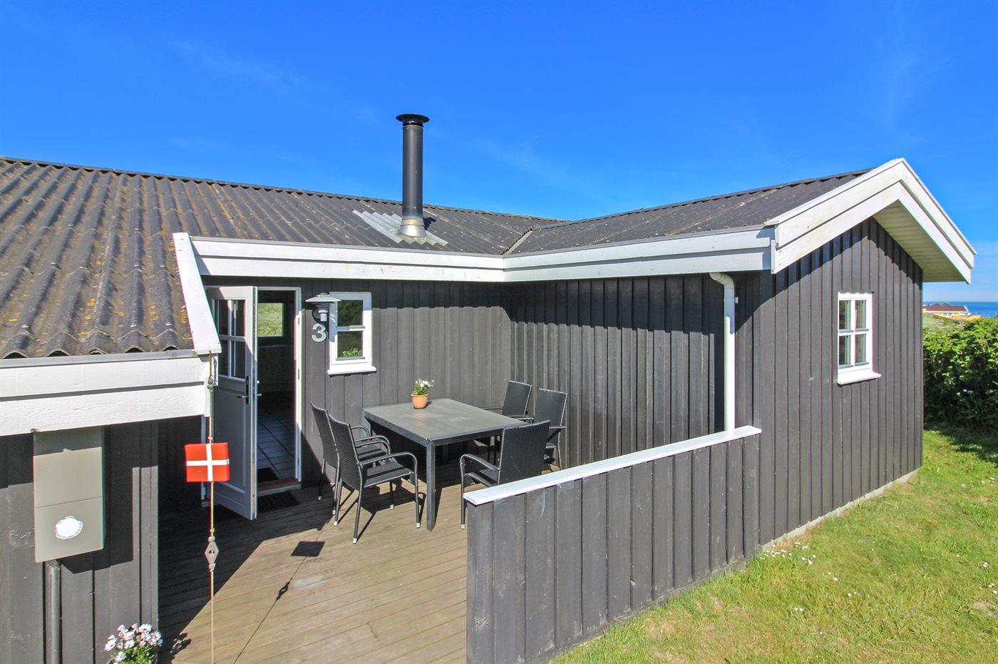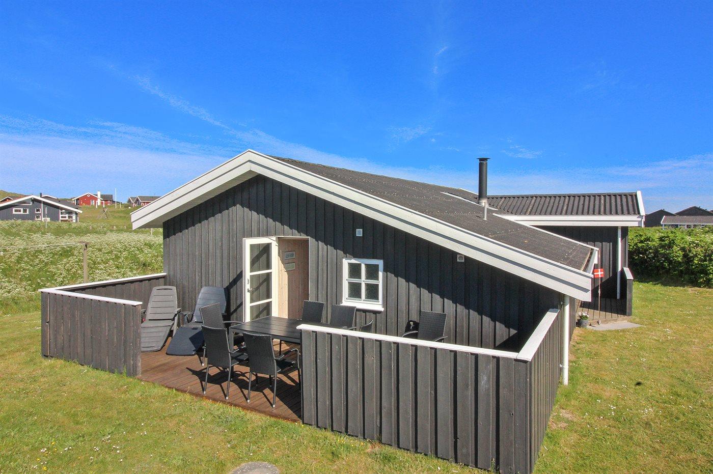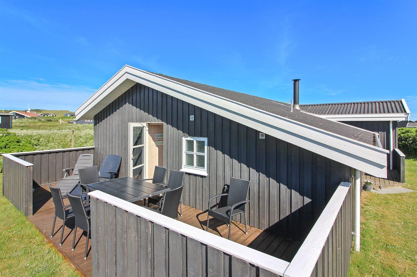 De vakantiewoning is gelegen op een 1000 m² groot Duingrond. Afstand tot de zee 300 m. Dichtstbijzijnde winkel 300 m. Bij de vakantiewoning hoort 35 m² terras. Daarnaast is er een 9 m² groot overdekt terras. Gereedschapsruimte. Schommel. Parkeerplaats bij het huis.