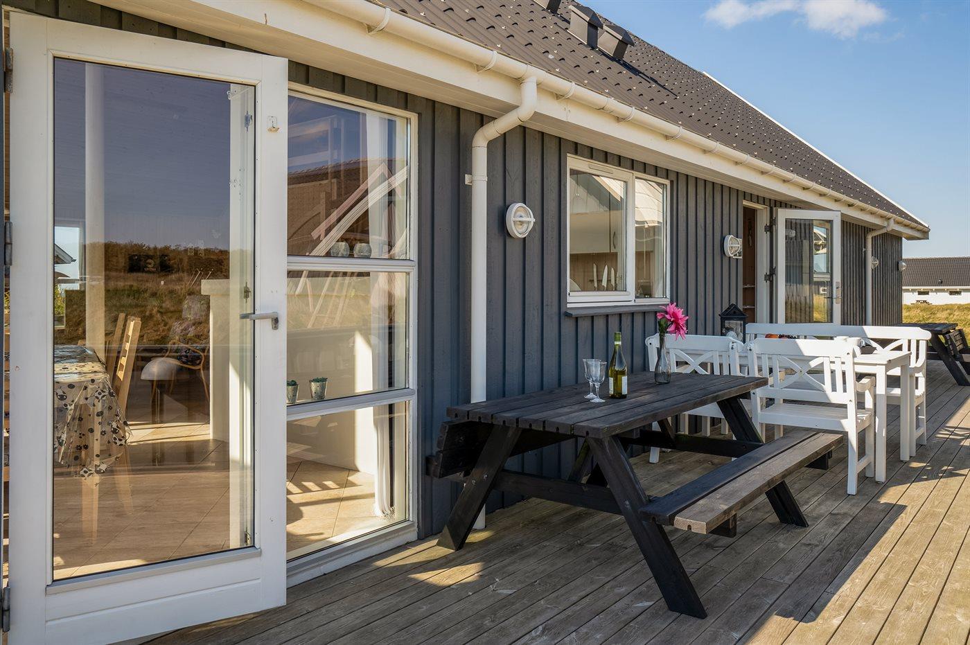 De vakantiewoning is gelegen op een 1250 m² groot Duingrond. Afstand tot de zee 150 m. Dichtstbijzijnde winkel 600 m. Bij de vakantiewoning hoort 50 m² terras. Daarnaast is er een 6 m² groot overdekt terras. Gereedschapsruimte. Schommel. Carport ter beschikking.