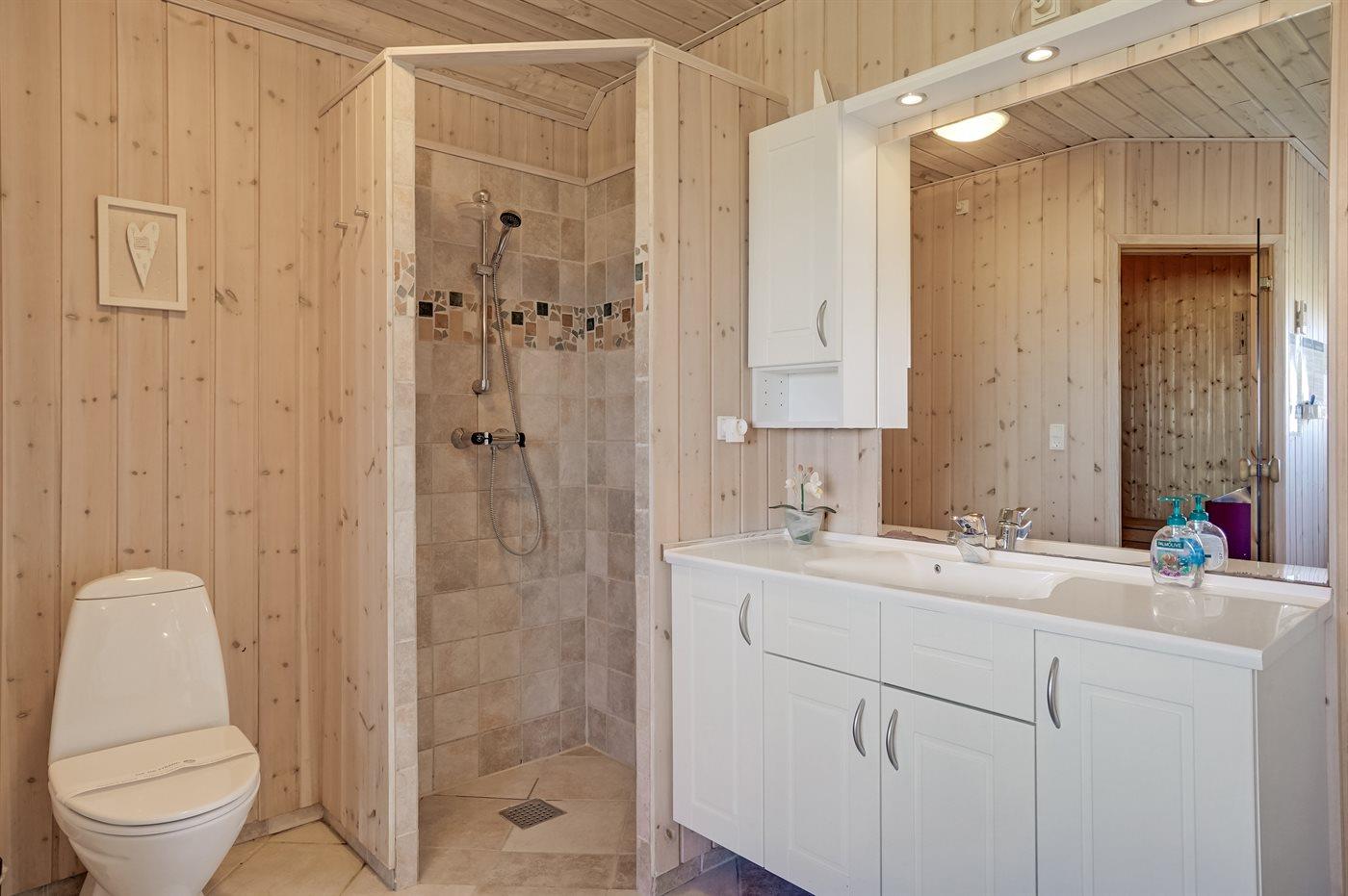 Er is 2 badkamers met douchehok en 2 toiletten. Er is vloerverwarming in 2 van de badkamers. De sauna biedt de gelegenheid tot ontspanning.