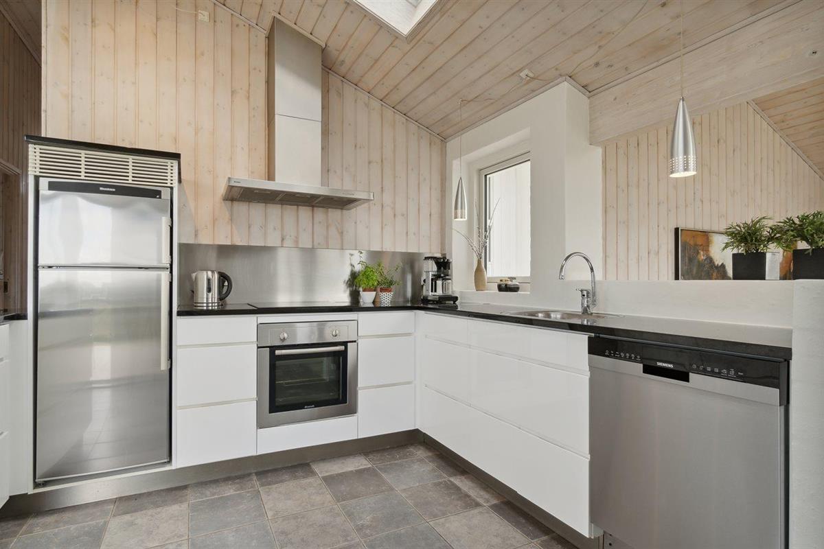 De keuken is uitgerust met koelkast Er zijn 4 keramische kookplaten, heteluchtoven en vaatwasser.