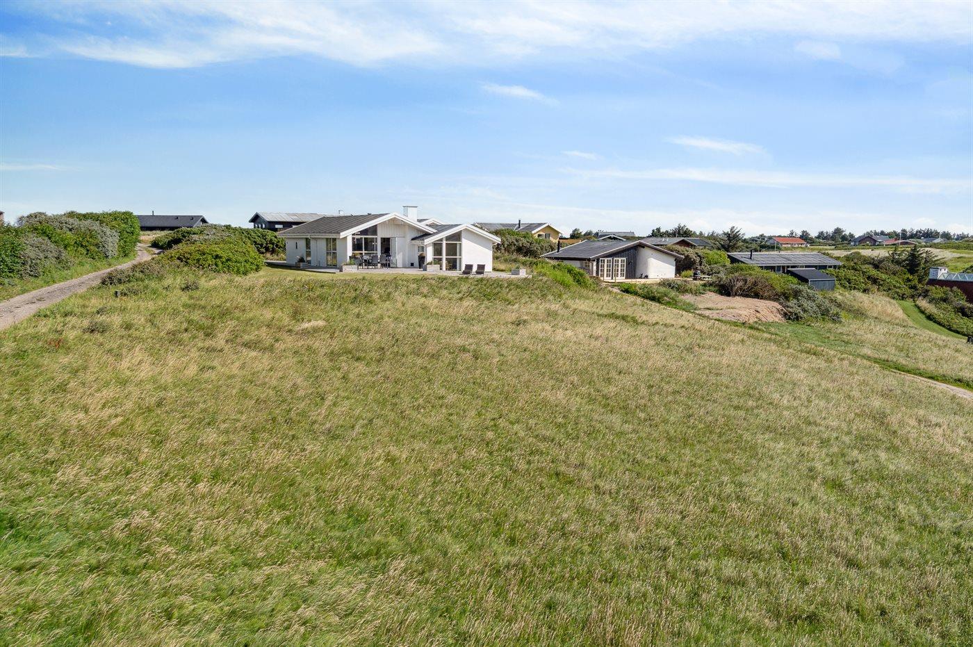 De vakantiewoning is gelegen op een 1800 m² groot natuural grond. Afstand tot de zee 281 m. Dichtstbijzijnde winkel 500 m. Bij de vakantiewoning hoort 40 m² terras. Daarnaast is er een 20 m² groot overdekt terras. Gereedschapsruimte. Parkeerplaats bij het huis.