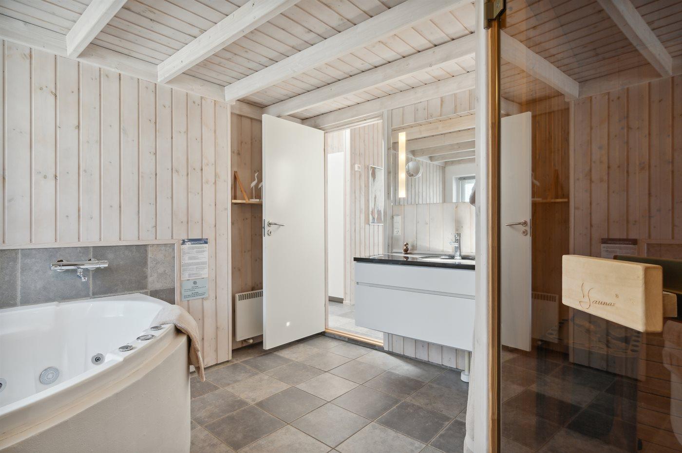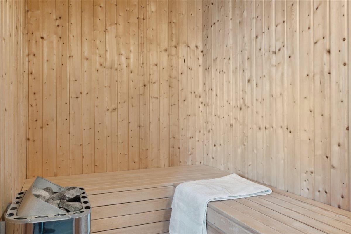 Er is 2 badkamers met douchehok en 2 toiletten. Er is vloerverwarming in 1 badkamer. De sauna biedt de gelegenheid tot ontspanning.