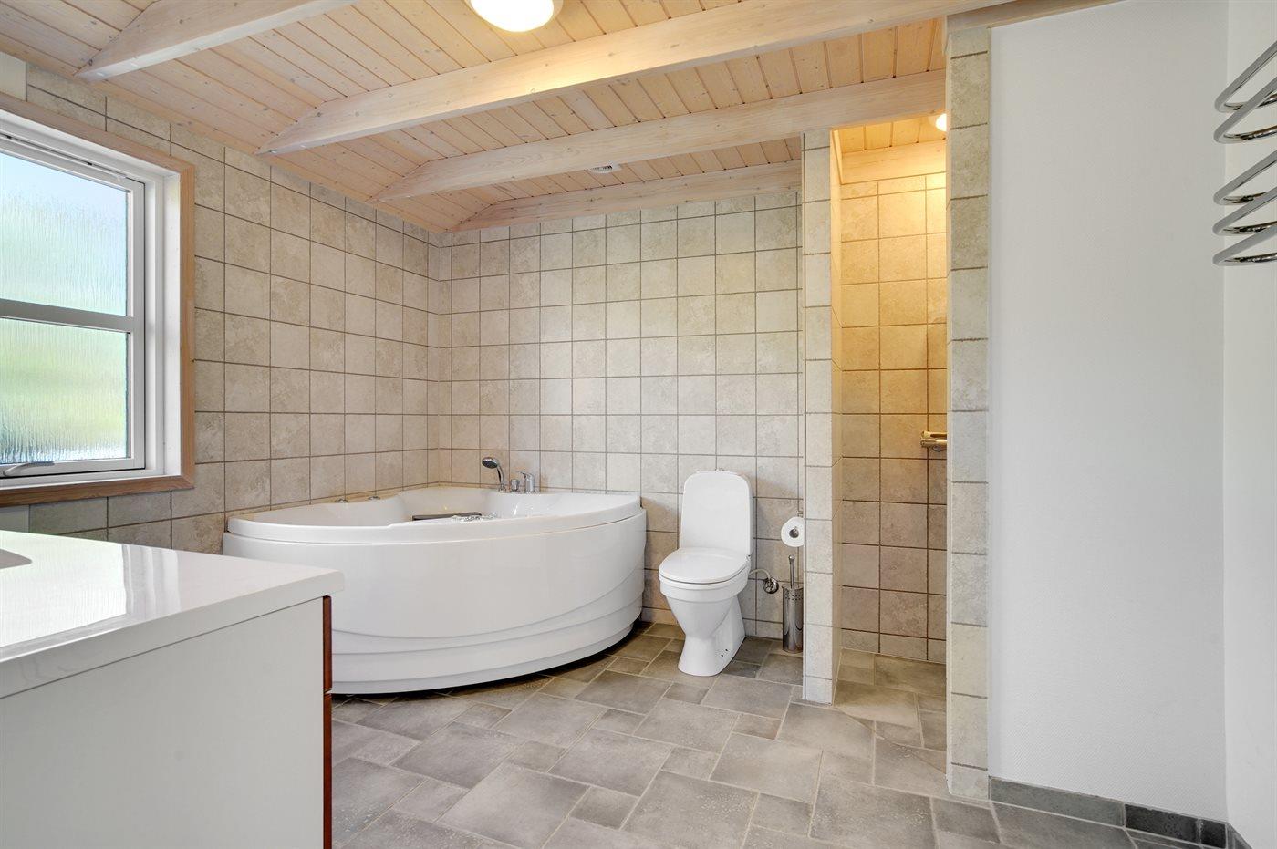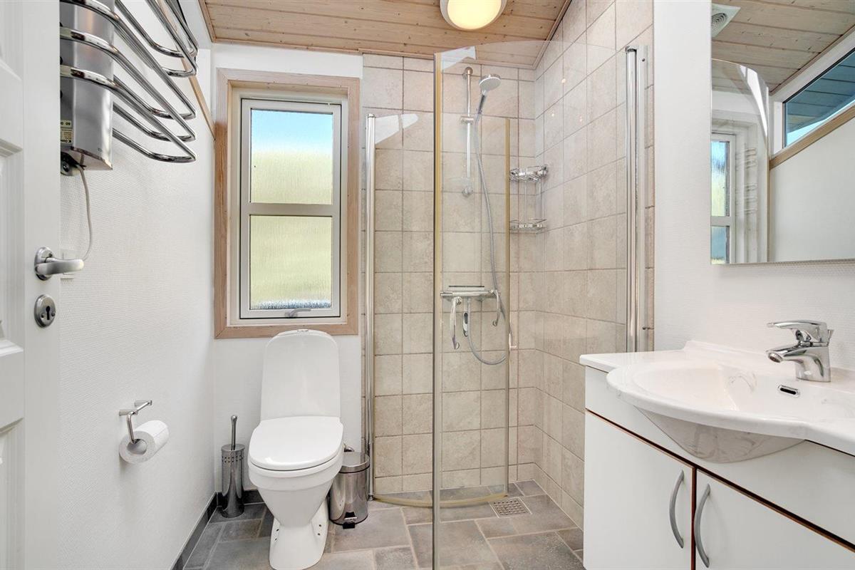 Er is 2 badkamers met douchehok en 2 toiletten. Er is vloerverwarming in 2 van de badkamers.