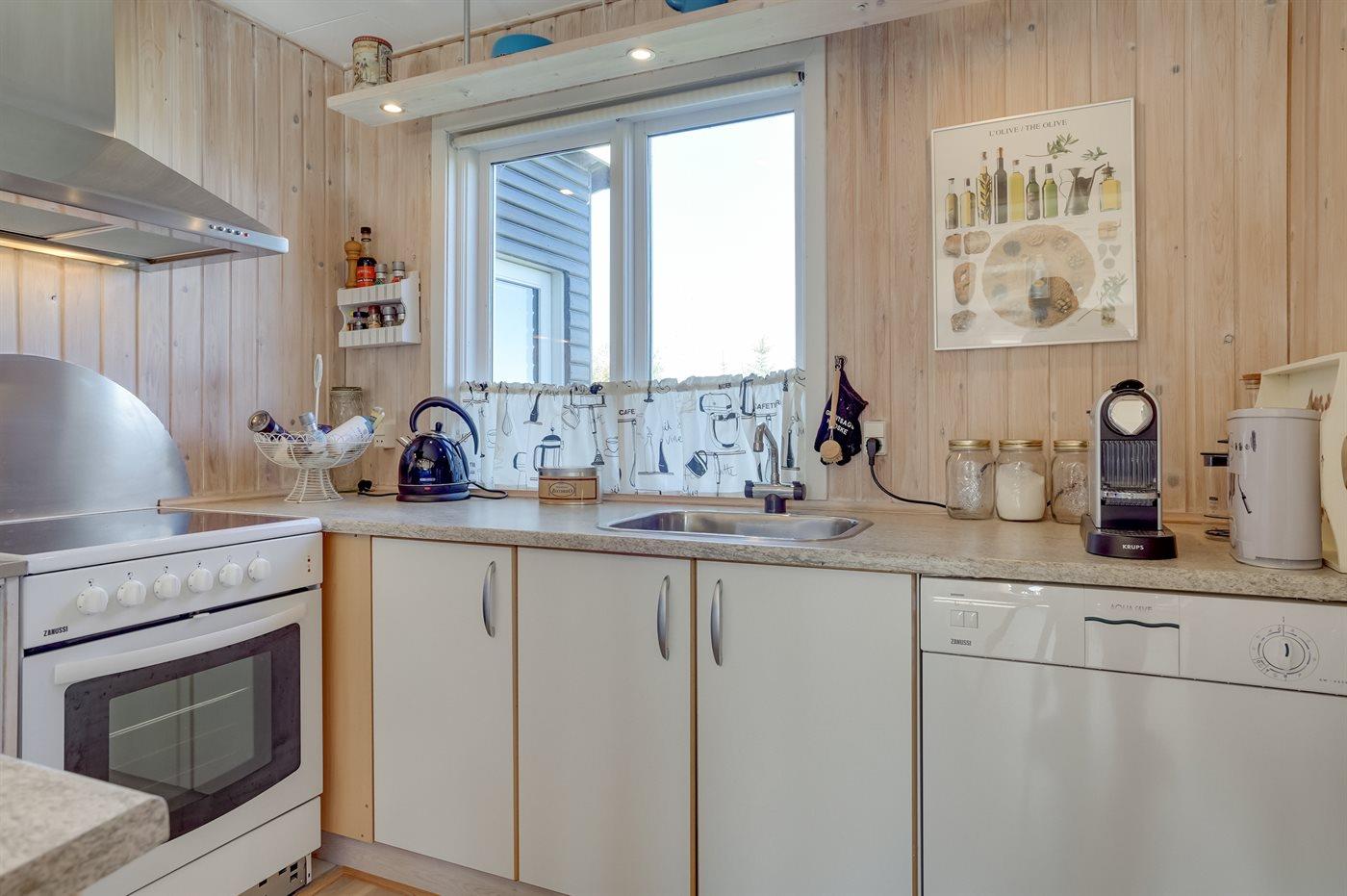 De keuken is uitgerust met koelkast Er zijn 4 keramische kookplaten, heteluchtoven en vaatwasser.