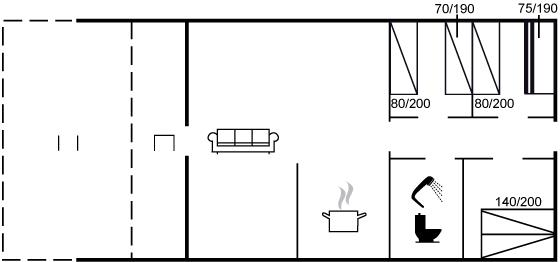Er zijn in totaal 3 slaapkamers. De slaapplaatsen zijn als volgt verdeeld: 2 slaapplaatsen in tweepersoonsbed. 3 slaapplaatsen in eenpersoonsbedden. 2 slaapplaatsen in stapelbed. Verder is kinderbed ter beschikking.