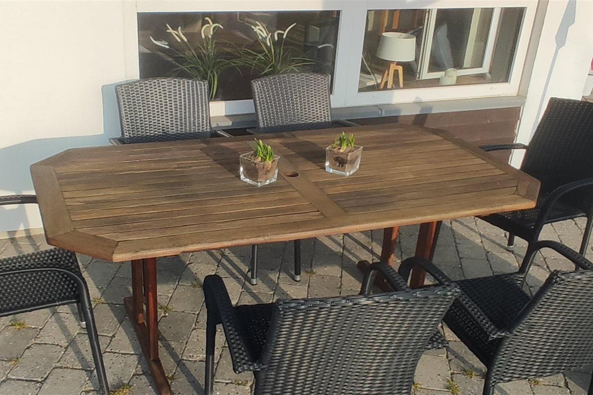 De keuken is uitgerust met koelkast Er is 4 inductiekookplaten, heteluchtoven, magnetron en vaatwasser.