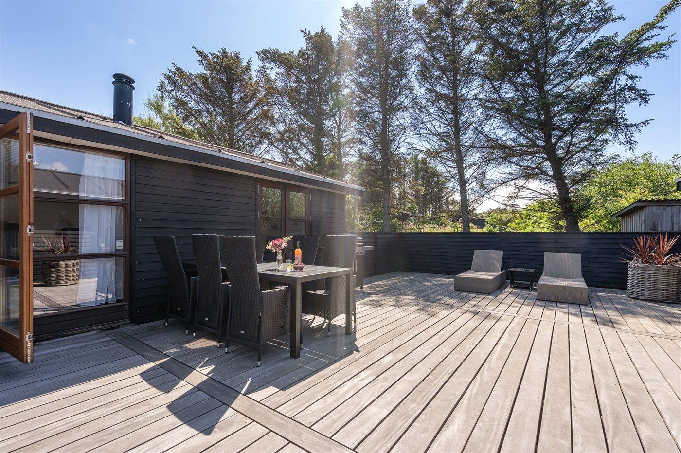 De vakantiewoning is gelegen op een 1440 m² groot natuural grond. Afstand tot de zee 600 m. Dichtstbijzijnde winkel 650 m. Bij de vakantiewoning hoort 150 m² terras. Gereedschapsruimte.Vuurplaats. Barbecue. Parkeerplaats bij het huis.