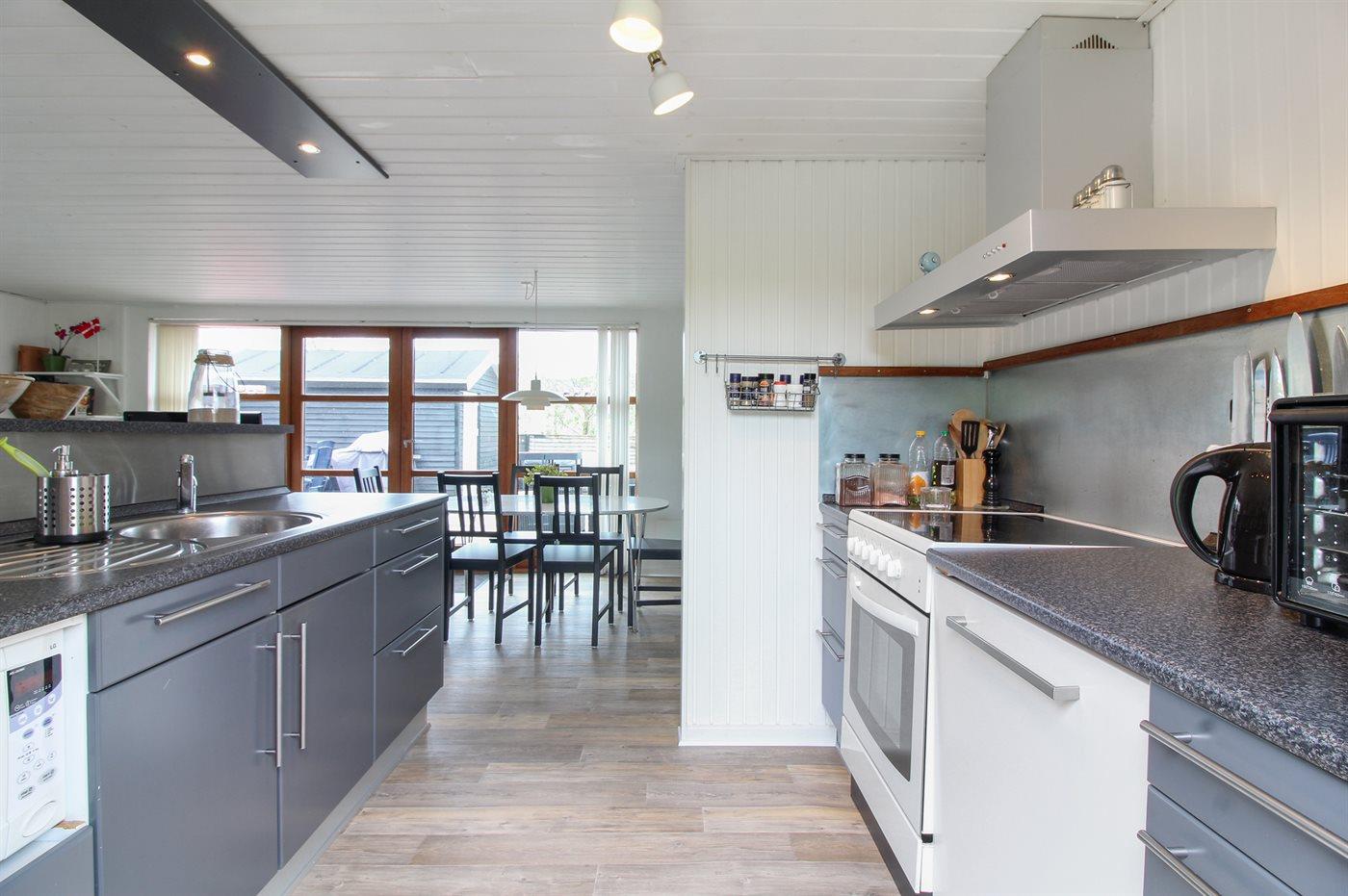 De keuken is uitgerust met koelkast Er zijn 4 keramische kookplaten, heteluchtoven, magnetron en vaatwasser.