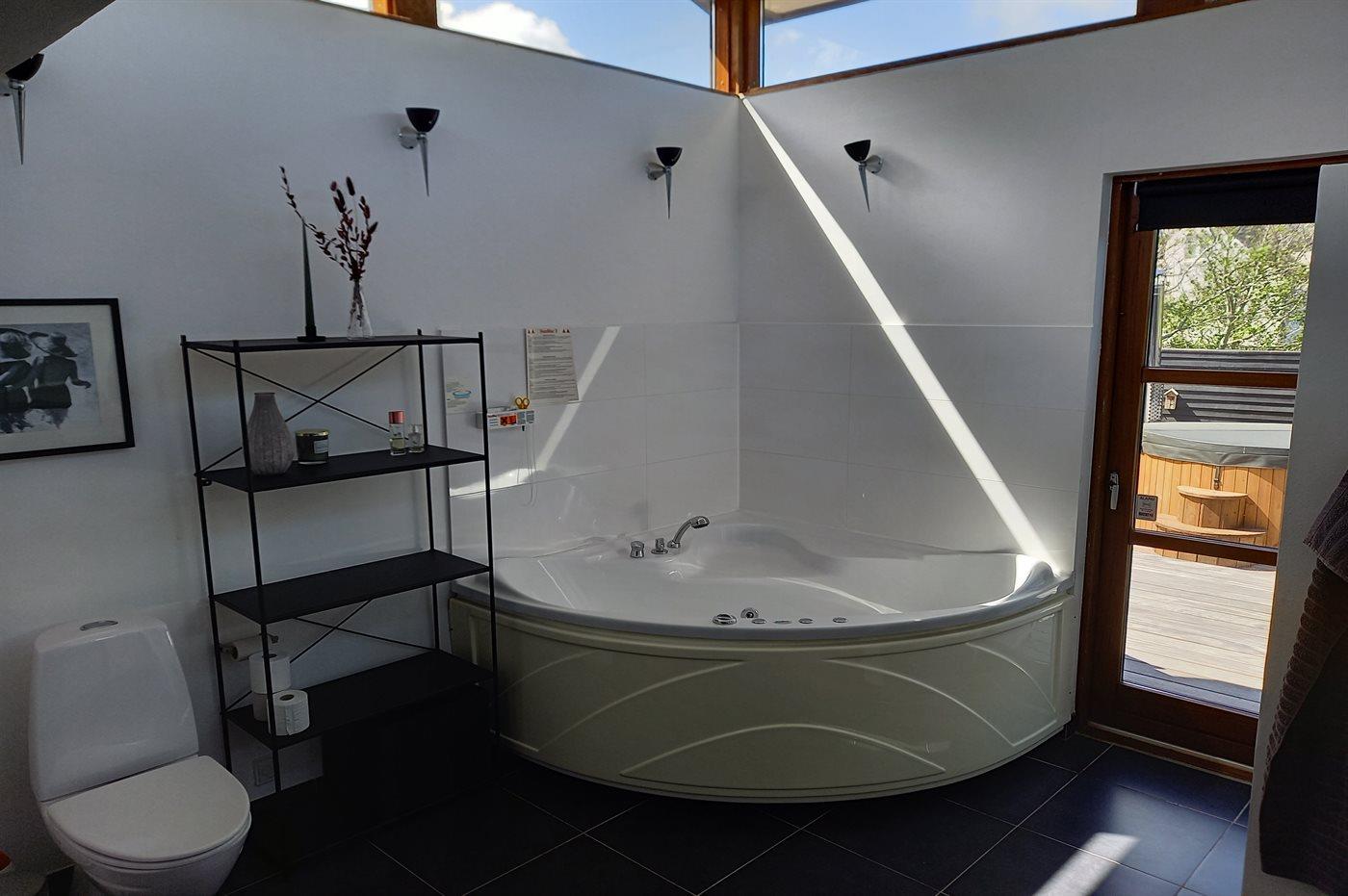 Het binnenbubbelbad (vulwater) biedt ontspanning aan 2 personen.Het buiten hot tub biedt ontspanning aan 5 personen.