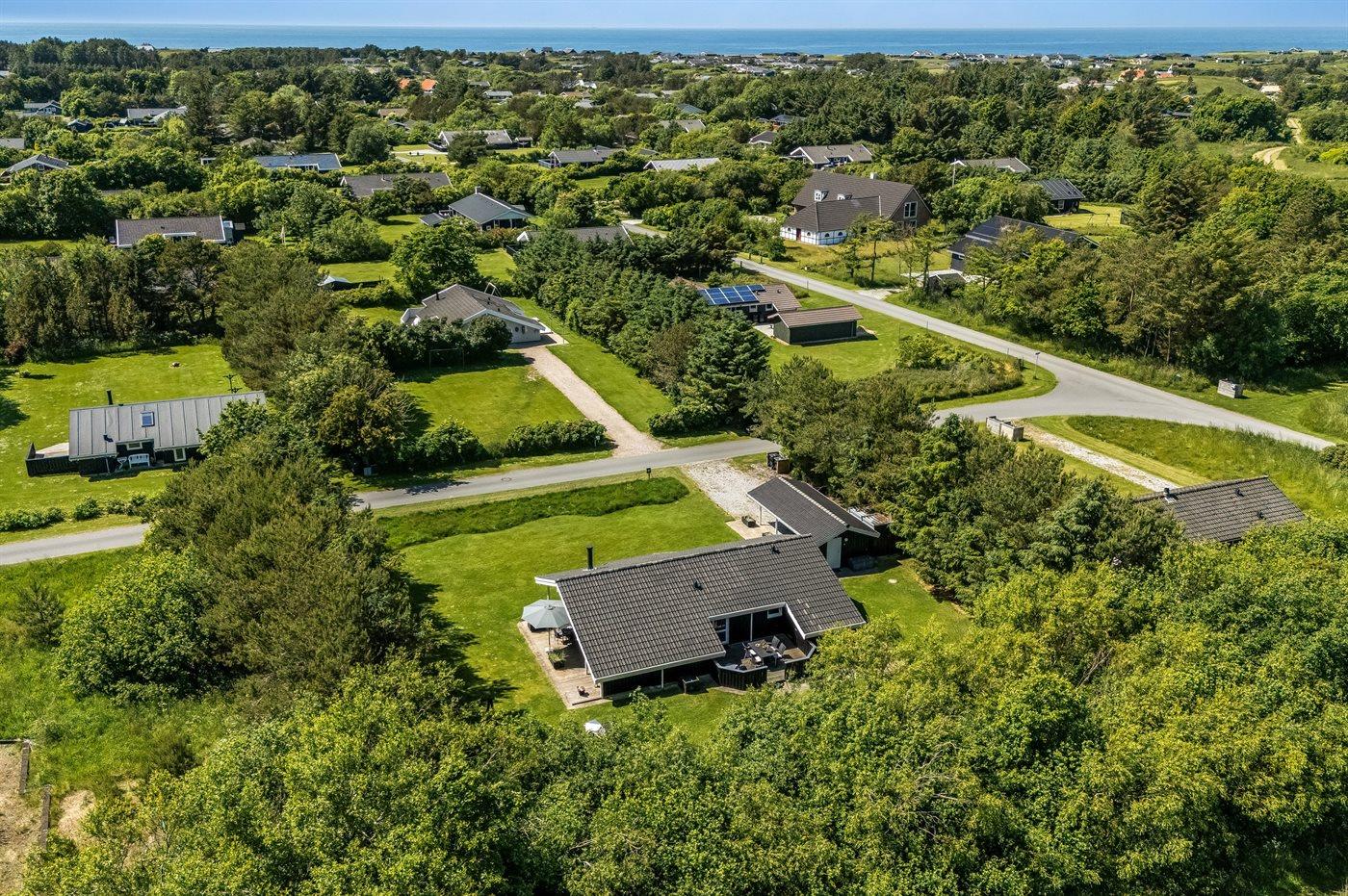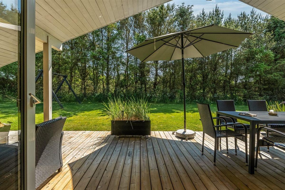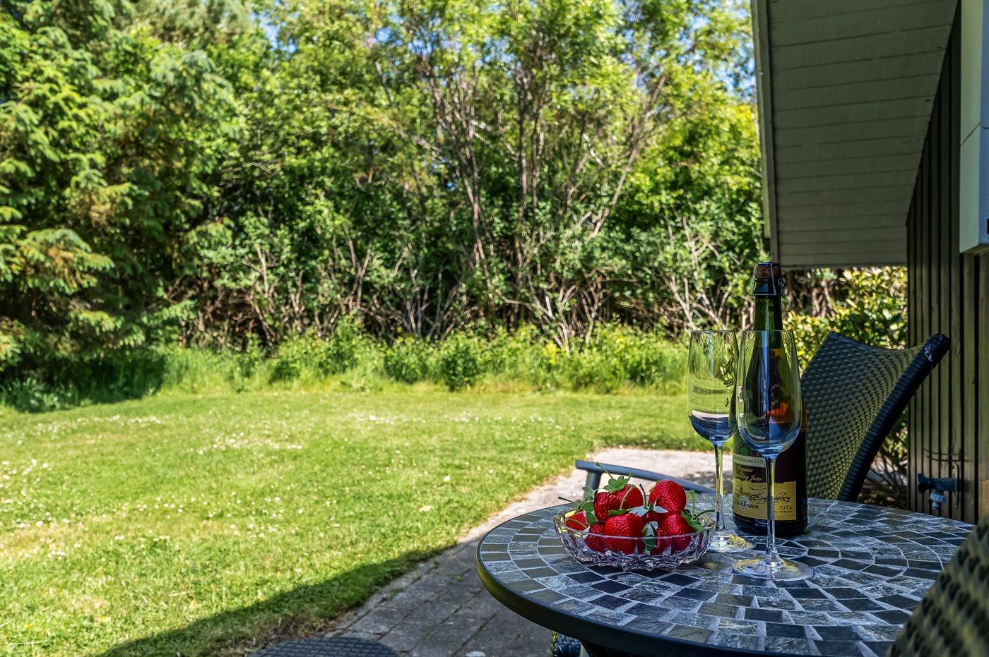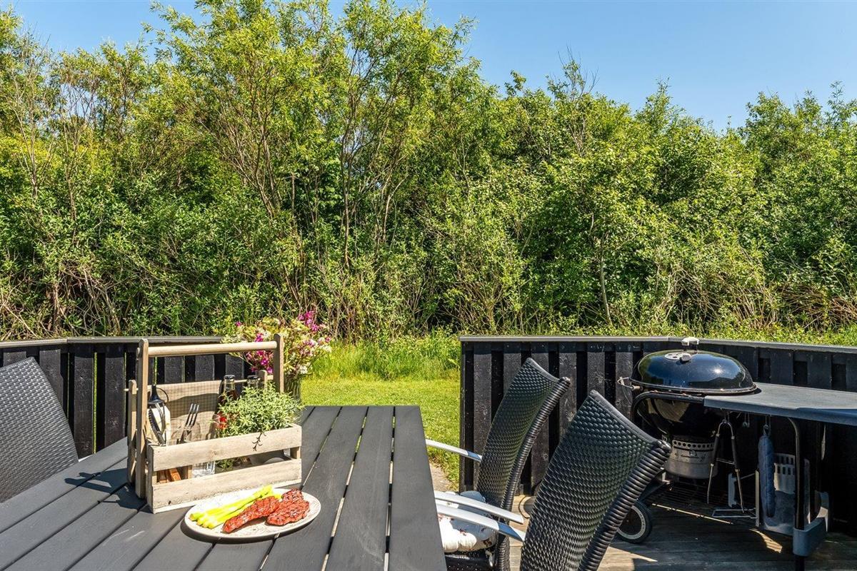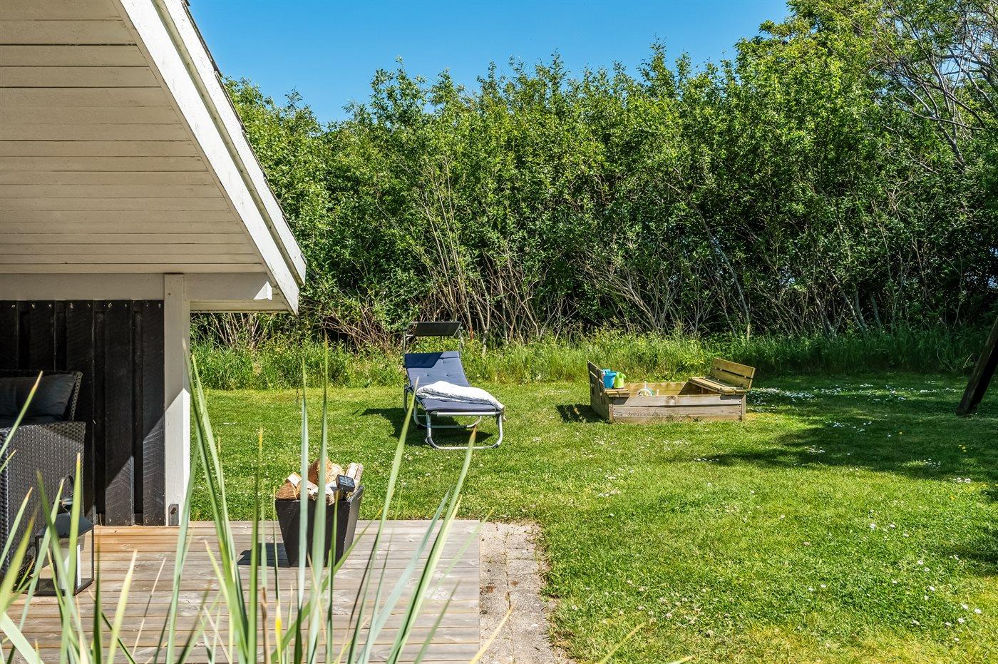 De vakantiewoning is gelegen op een 1250 m² groot natuural grond. Afstand tot de zee 1180 m. Dichtstbijzijnde winkel 300 m. Bij de vakantiewoning hoort 22 m² terras. Daarnaast is er een 20 m² groot overdekt terras. Schommel. Zandbak. Carport ter beschikking. Parkeerplaats bij het huis.