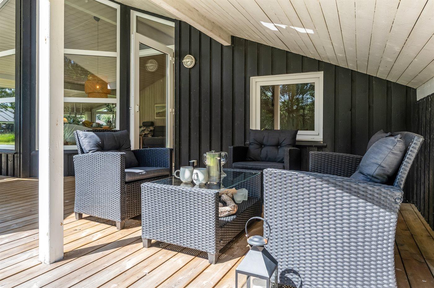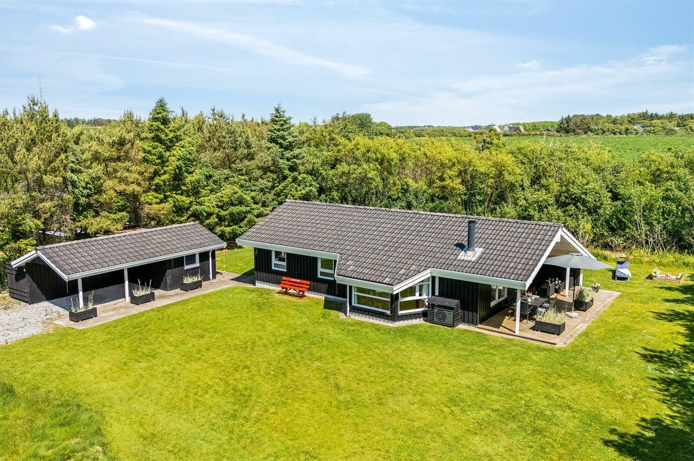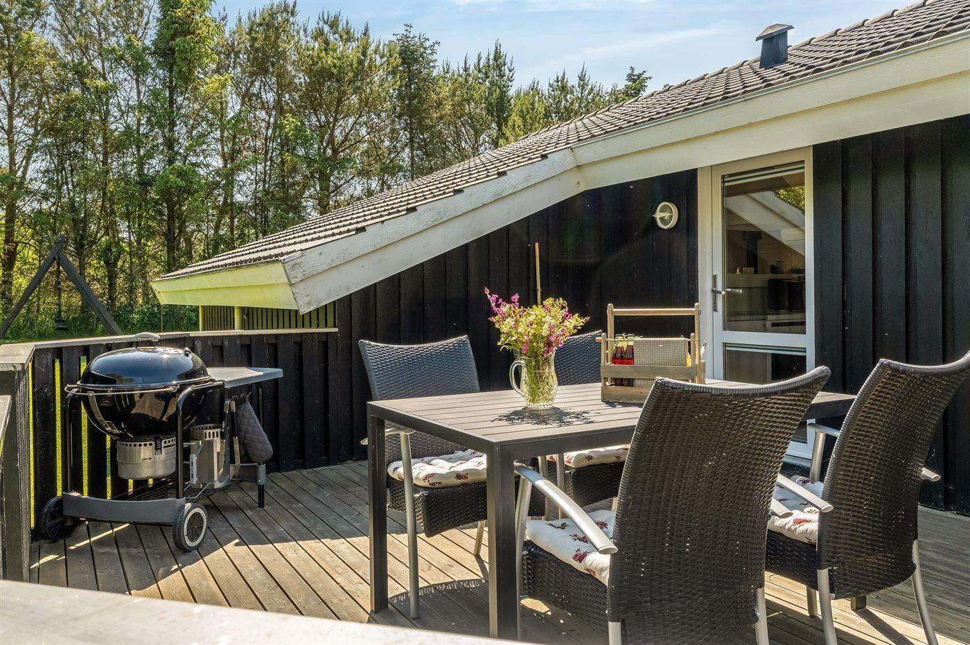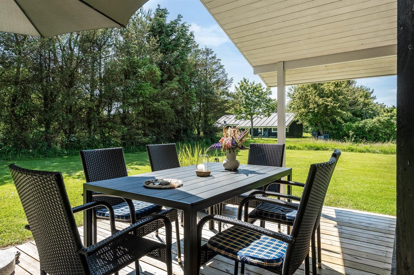 De vakantiewoning is gelegen op een 1250 m² groot natuural grond. Afstand tot de zee 1180 m. Dichtstbijzijnde winkel 300 m. Bij de vakantiewoning hoort 22 m² terras. Daarnaast is er een 20 m² groot overdekt terras. Schommel. Zandbak. Carport ter beschikking. Parkeerplaats bij het huis.