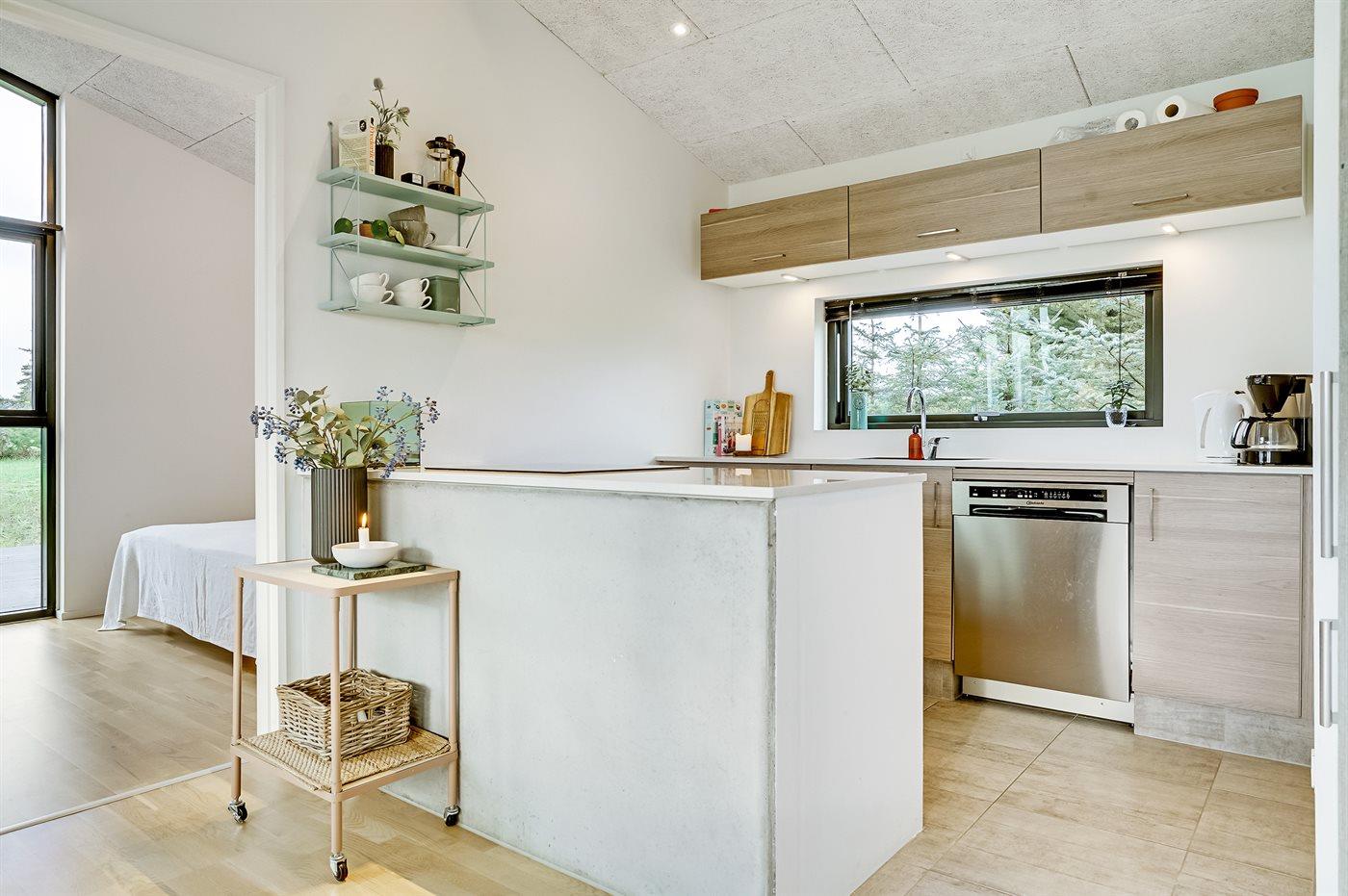 De keuken is uitgerust met koelkast Er is 4 inductiekookplaten, heteluchtoven en vaatwasser.