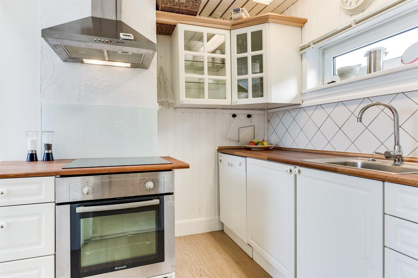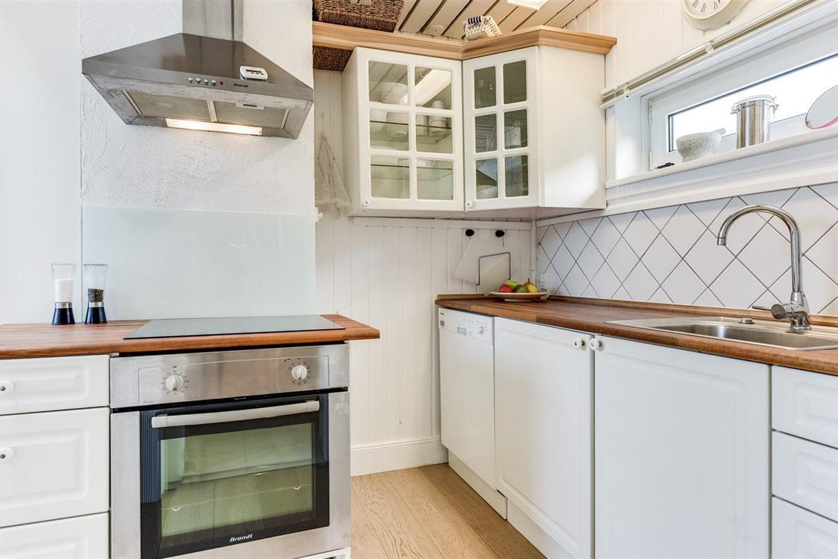 De keuken is uitgerust met koelkast Er is 4 inductiekookplaten, heteluchtoven, magnetron en vaatwasser.