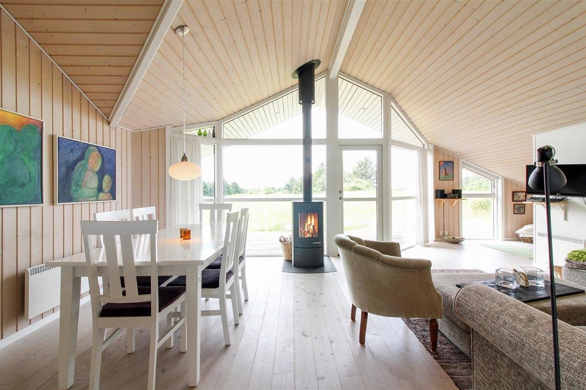 Modern vakantiehuis in Lønstrup met bubbelbad, houtkachel en ruime terrassen op groot natuurgrond.