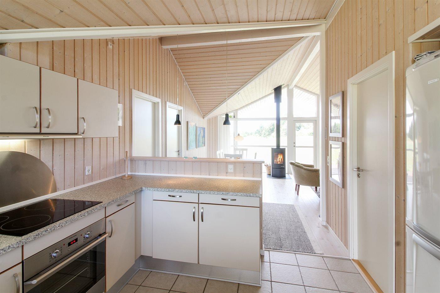 De keuken is uitgerust met koelkast Er zijn 4 keramische kookplaten, heteluchtoven en vaatwasser.