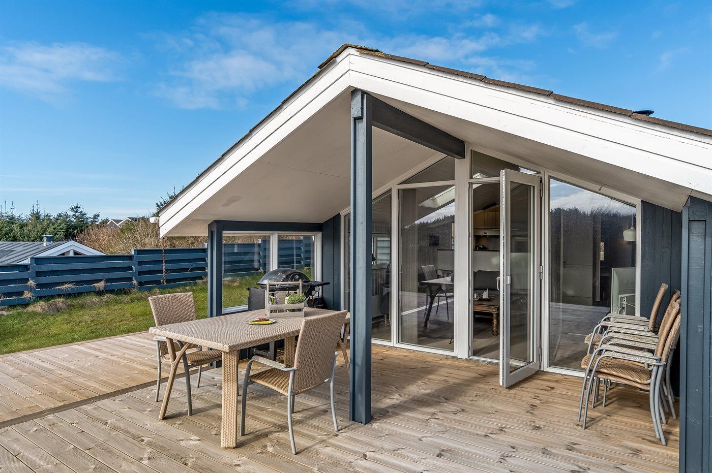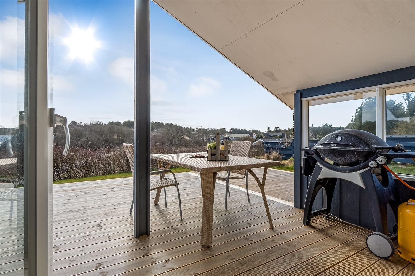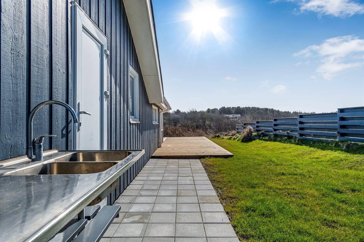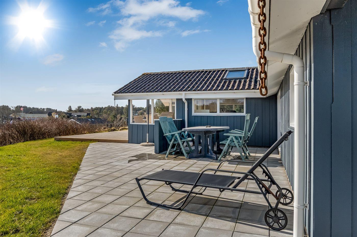 De vakantiewoning is gelegen op een 1300 m² groot natuural grond. Afstand tot de zee 500 m. Dichtstbijzijnde winkel 150 m. Bij de vakantiewoning hoort 45 m² terras. Daarnaast is er een 11 m² groot overdekt terras. Gereedschapsruimte. Barbecue. Parkeerplaats bij het huis.
