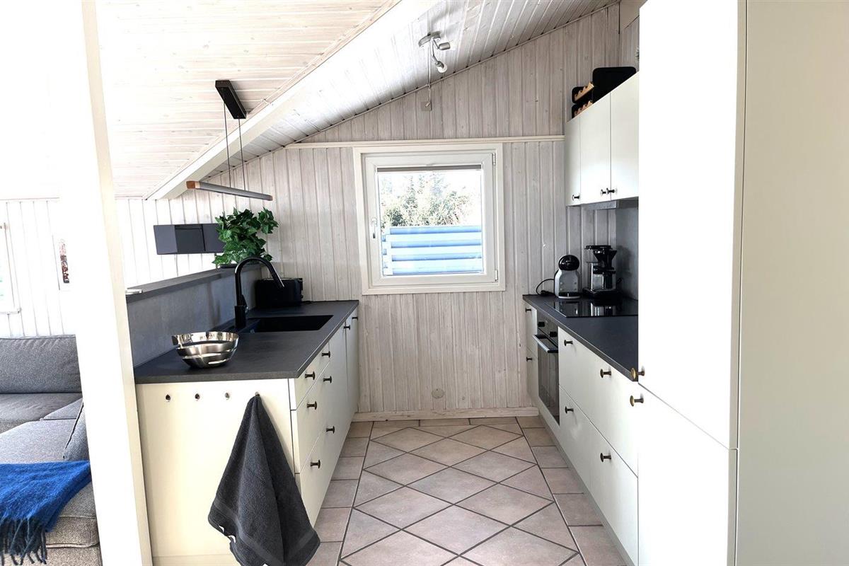 De keuken is uitgerust met koelkast Er is 4 elektrische kookplaten, bakoven, magnetron en vaatwasser. Vloerverwarming in de keuken.