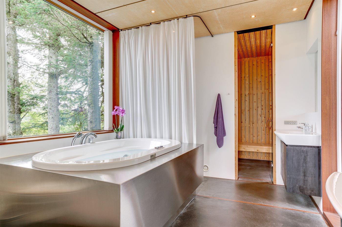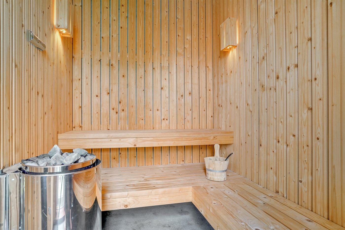 Er is 2 badkamers met douchehok en 2 toiletten. Er is vloerverwarming in 2 van de badkamers. De sauna biedt de gelegenheid tot ontspanning.