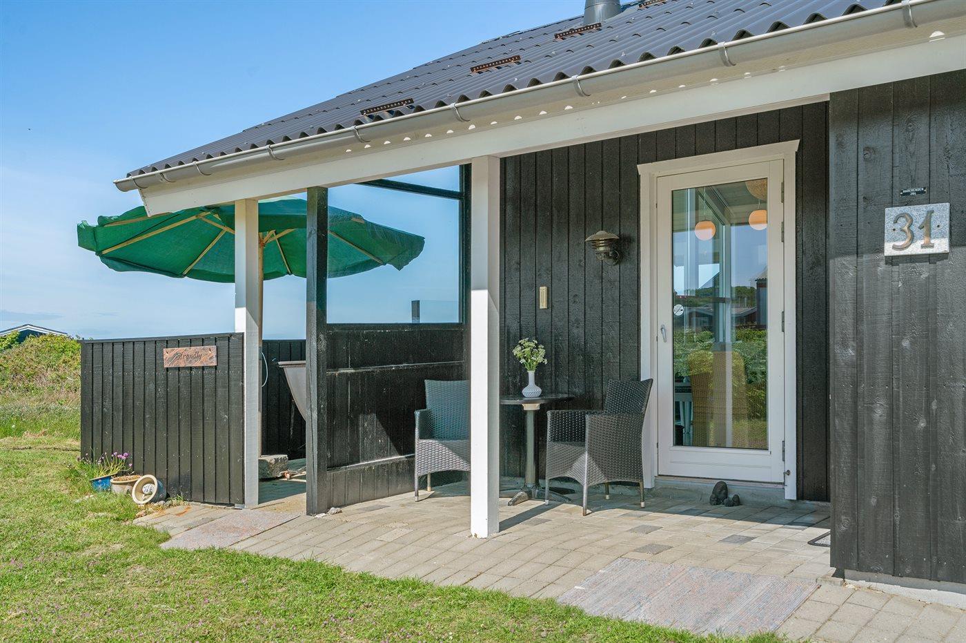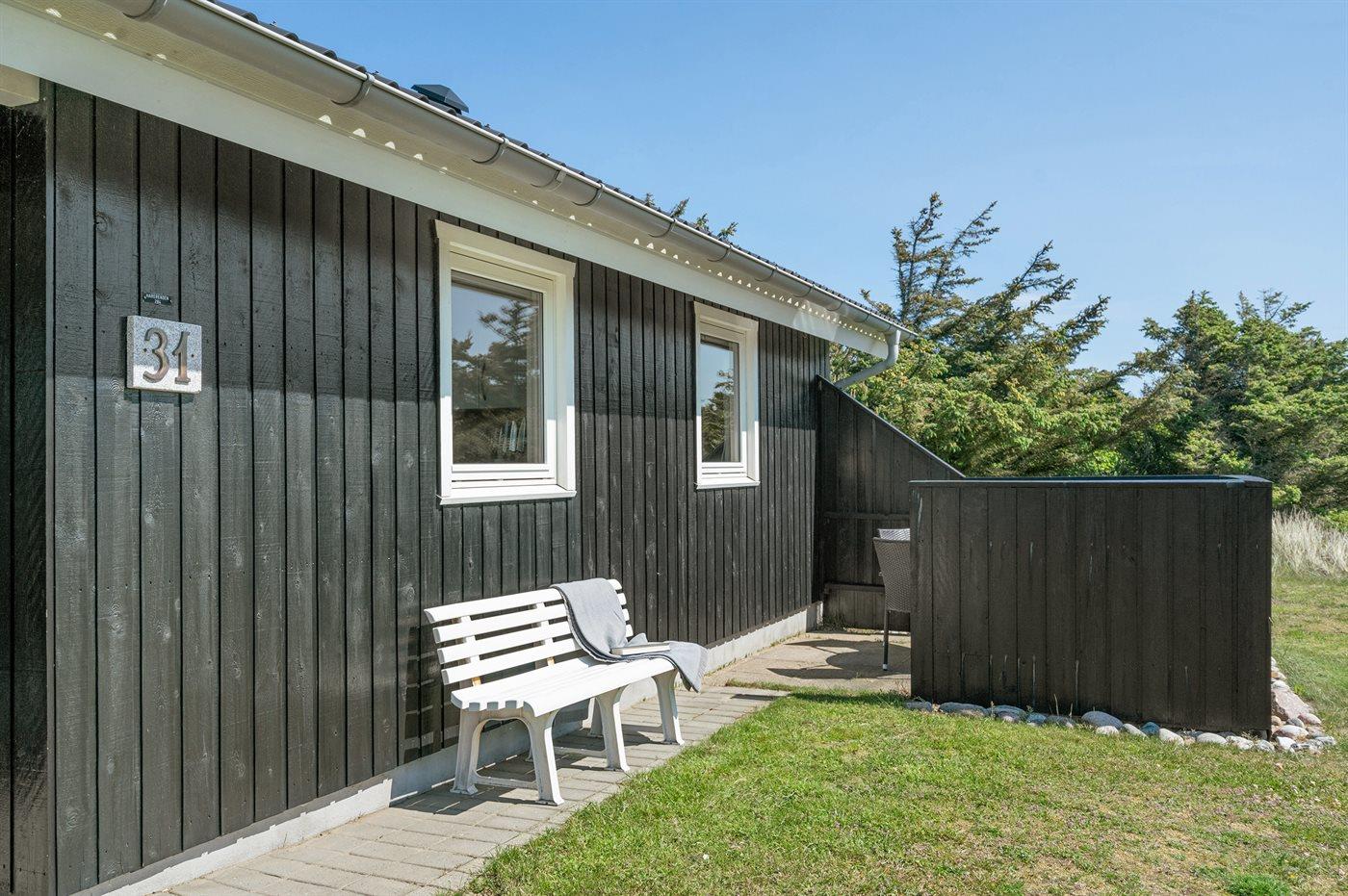 De vakantiewoning is gelegen op een 1000 m² groot natuural grond. Afstand tot de zee 150 m. Dichtstbijzijnde winkel 1200 m. Bij de vakantiewoning hoort 15 m² terras. Daarnaast is er een 20 m² groot overdekt terras. Schommel. Barbecue. Parkeerplaats bij het huis.