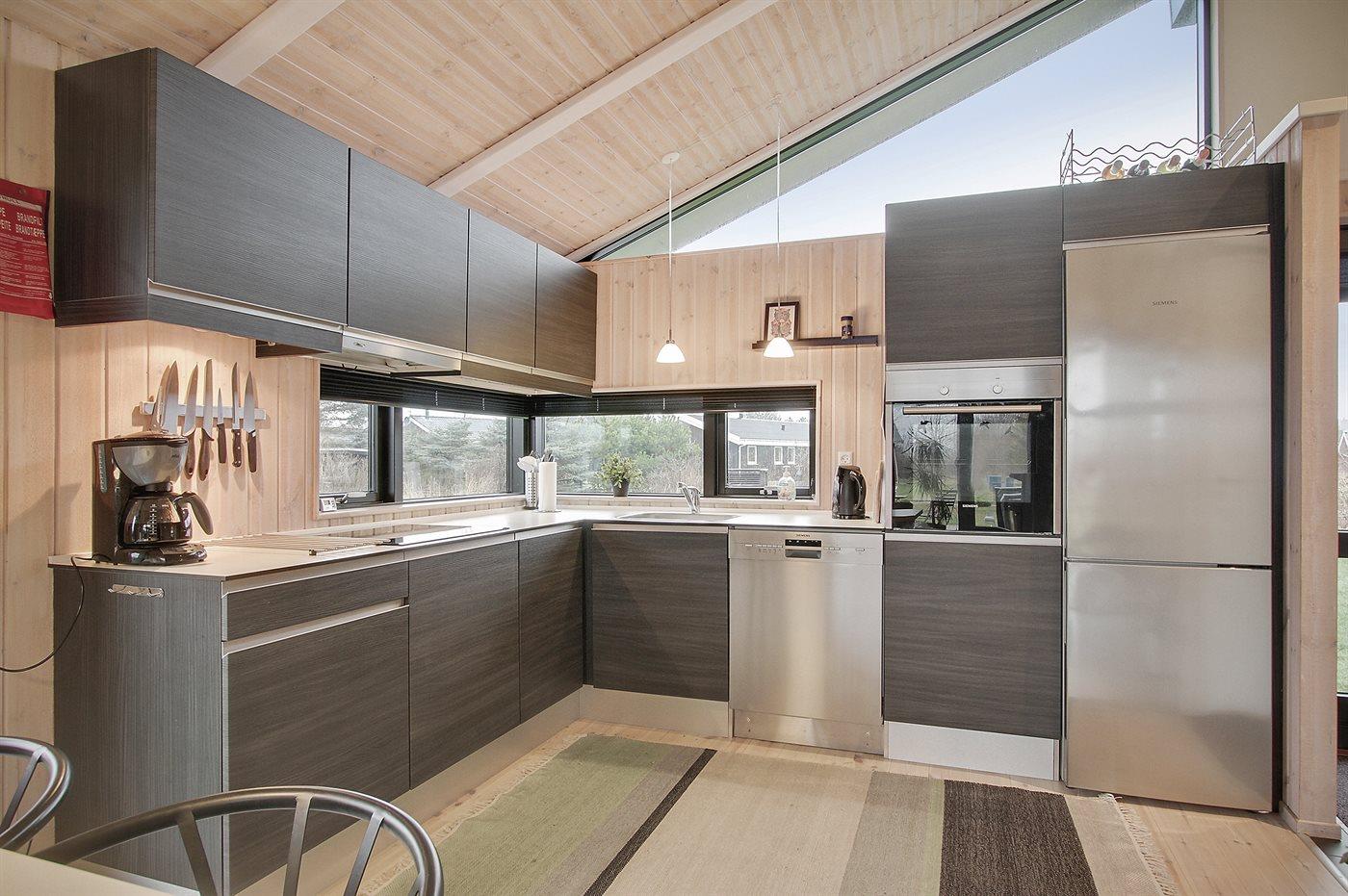 De keuken is uitgerust met koelkast Er zijn 4 keramische kookplaten, heteluchtoven, magnetron en vaatwasser.