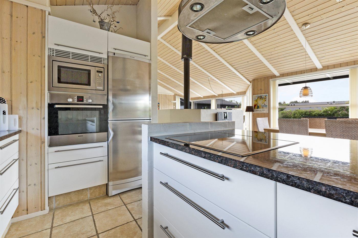 De keuken is uitgerust met koelkast Er is 4 inductiekookplaten, heteluchtoven, magnetron en vaatwasser.