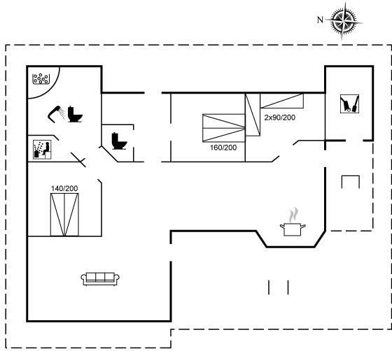 Er is 1 badkamer met douchehok en 2 toiletten, waarvan 1 gastentoilet. Er is vloerverwarming in 1 badkamer. Er is vloerverwarming in het gastentoilet. De sauna biedt de gelegenheid tot ontspanning.