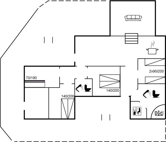 Er is 2 badkamers met douchehok en 2 toiletten. Er is vloerverwarming in 2 van de badkamers. De sauna biedt de gelegenheid tot ontspanning.