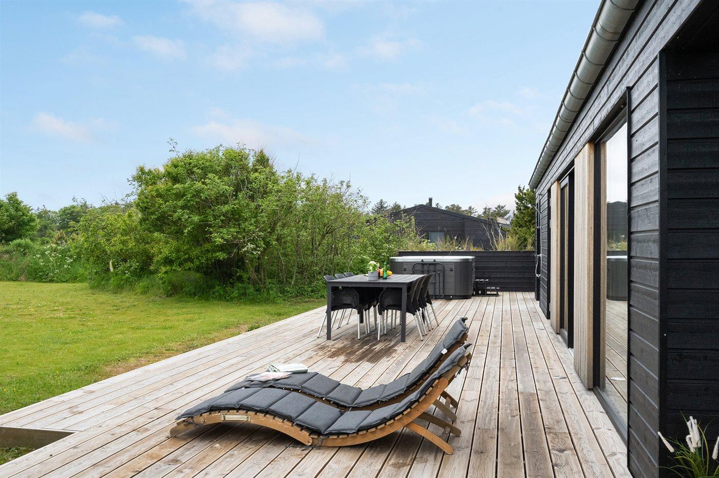 Modern vakantiehuis in Lønstrup met sauna, twee bubbelbaden en een terras van 100 m², vlakbij zee.