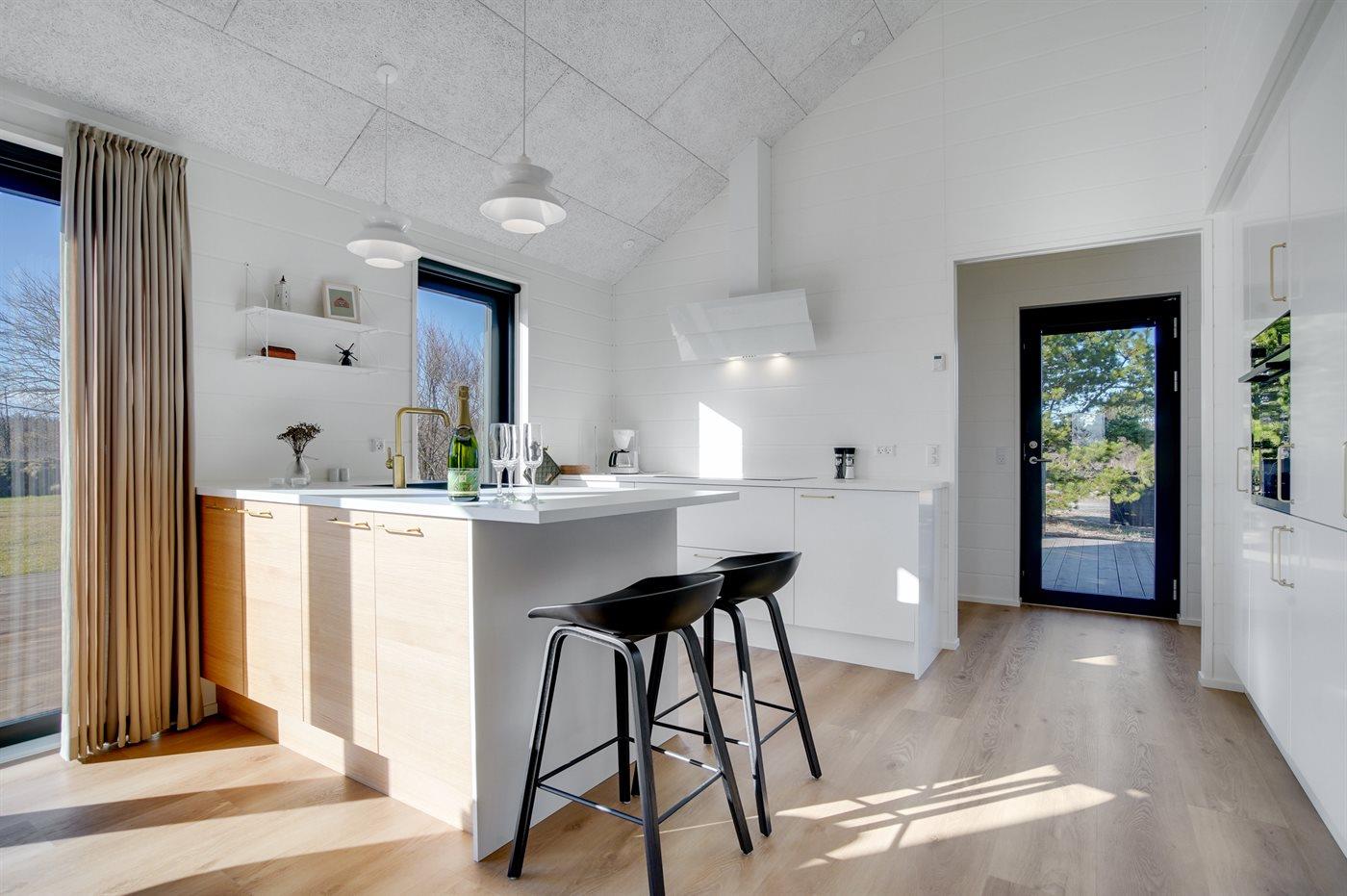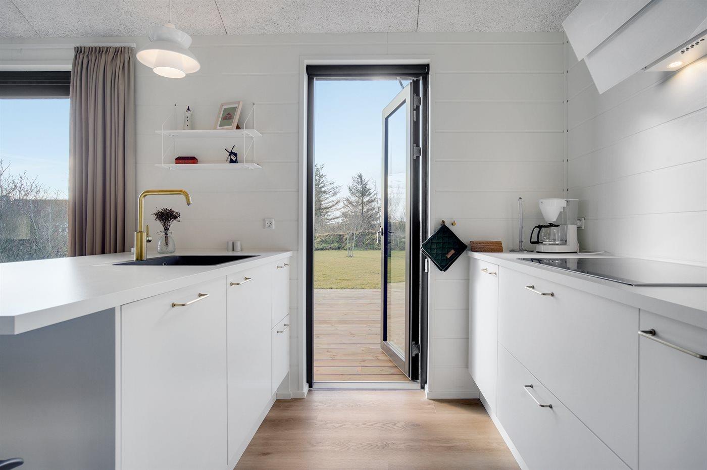 De keuken is uitgerust met koelkast Er is 4 inductiekookplaten, heteluchtoven, magnetron en vaatwasser.