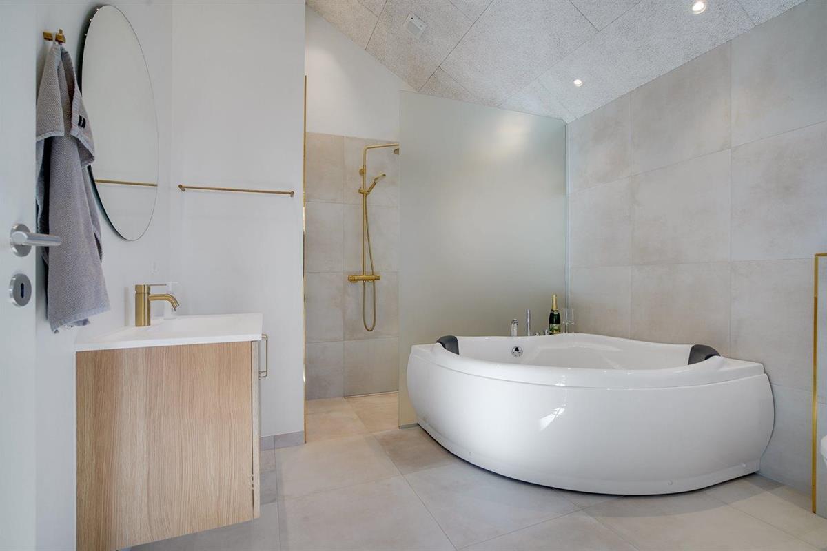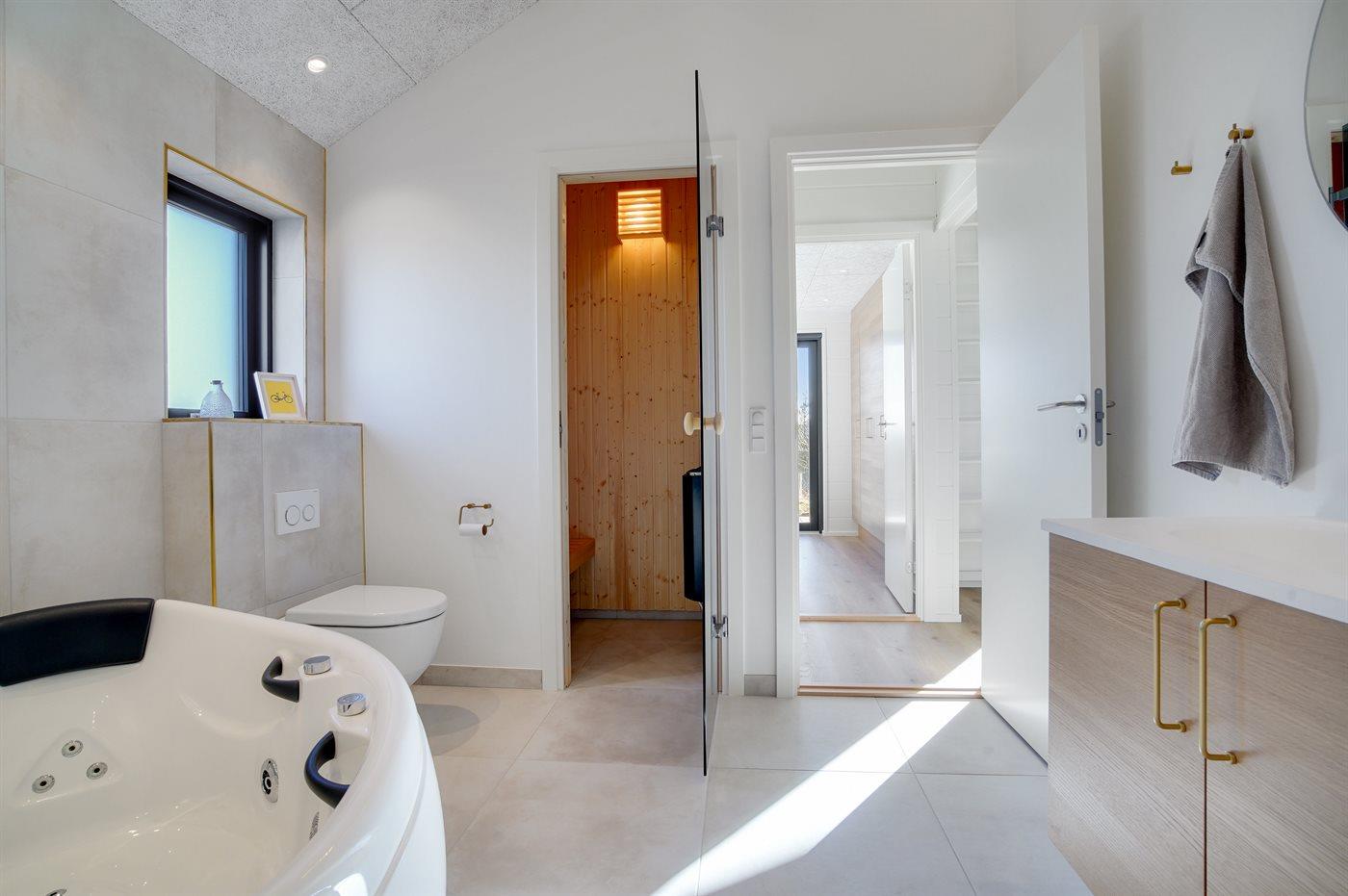 Er is 2 badkamers met douchehok en 2 toiletten. Er is vloerverwarming in 2 van de badkamers. De sauna biedt de gelegenheid tot ontspanning.