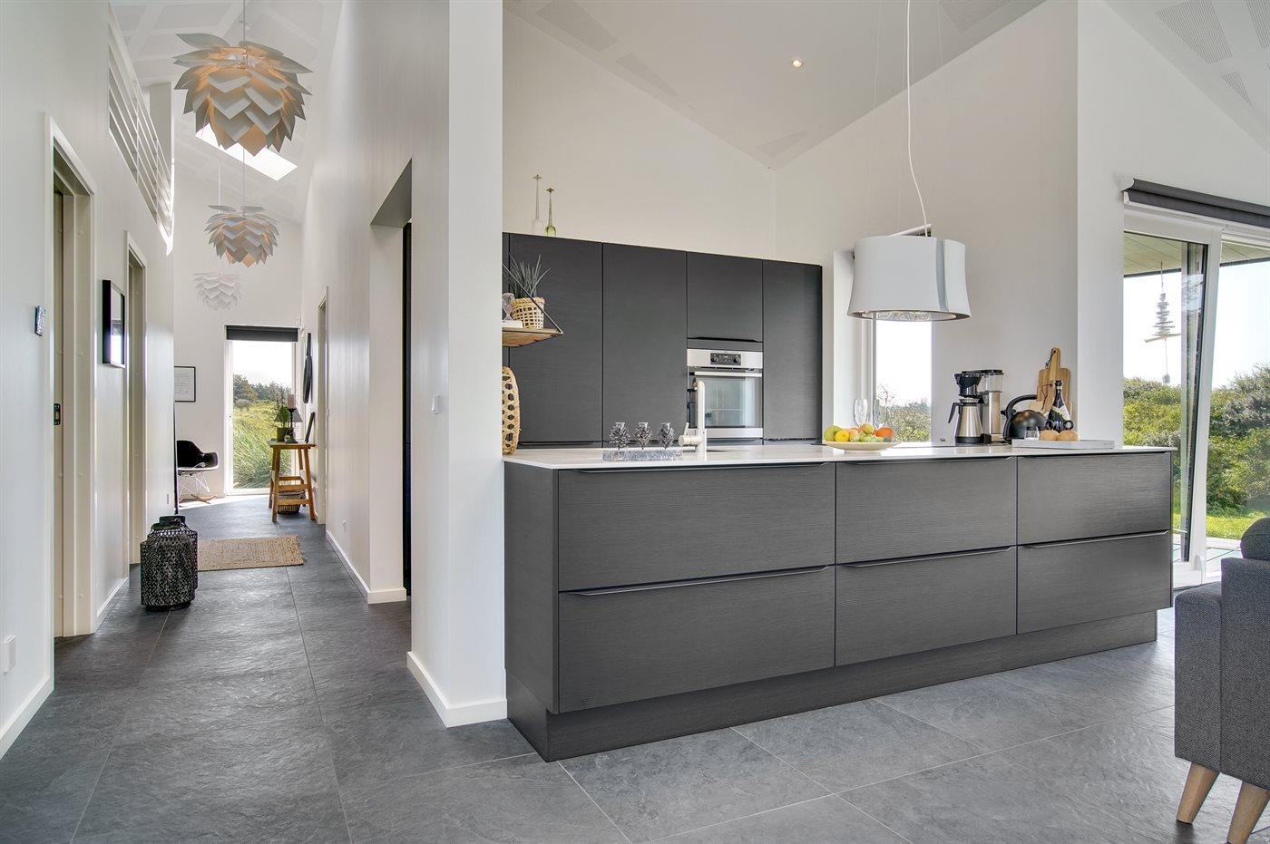 De keuken is uitgerust met koelkast Er is 4 inductiekookplaten, heteluchtoven, magnetron en vaatwasser.